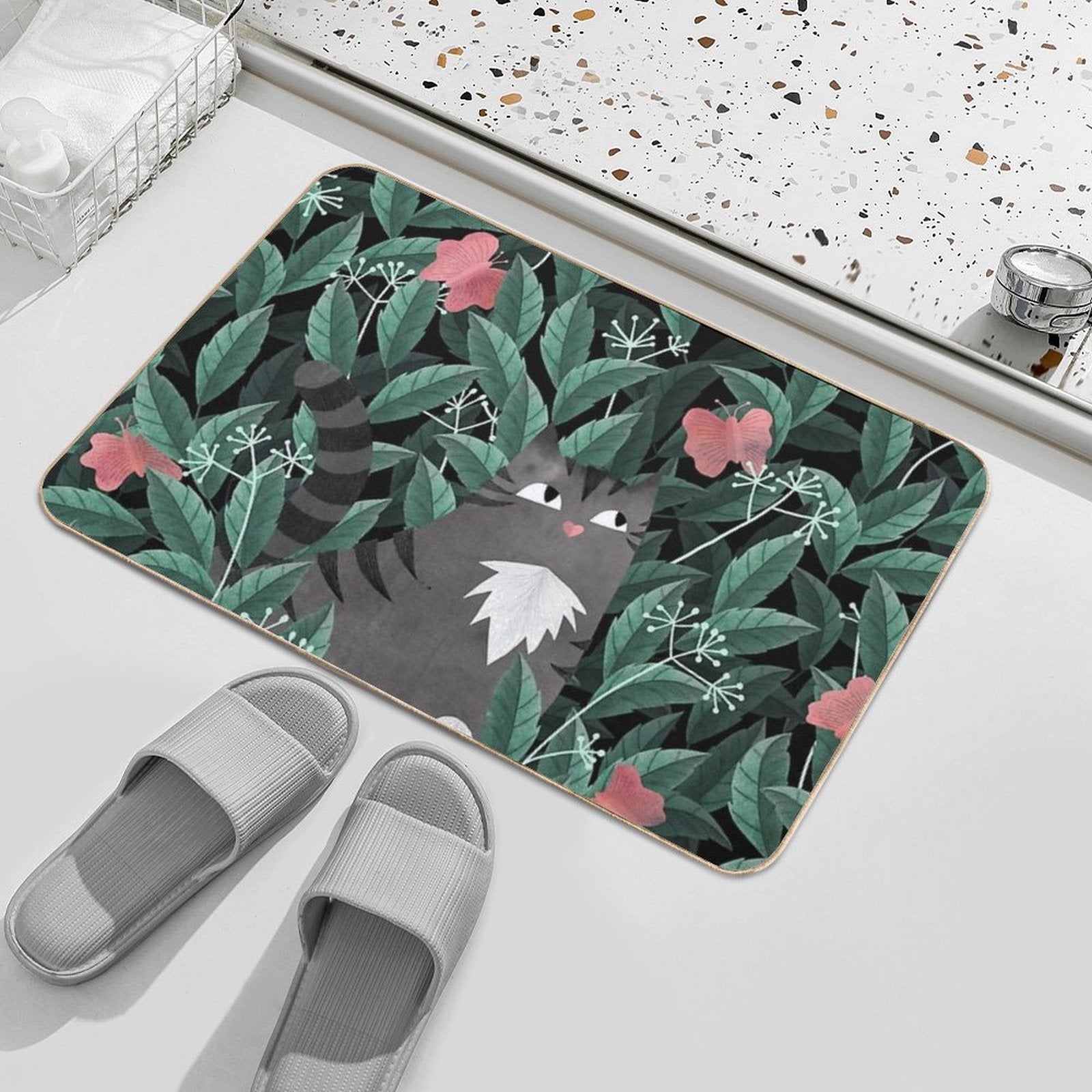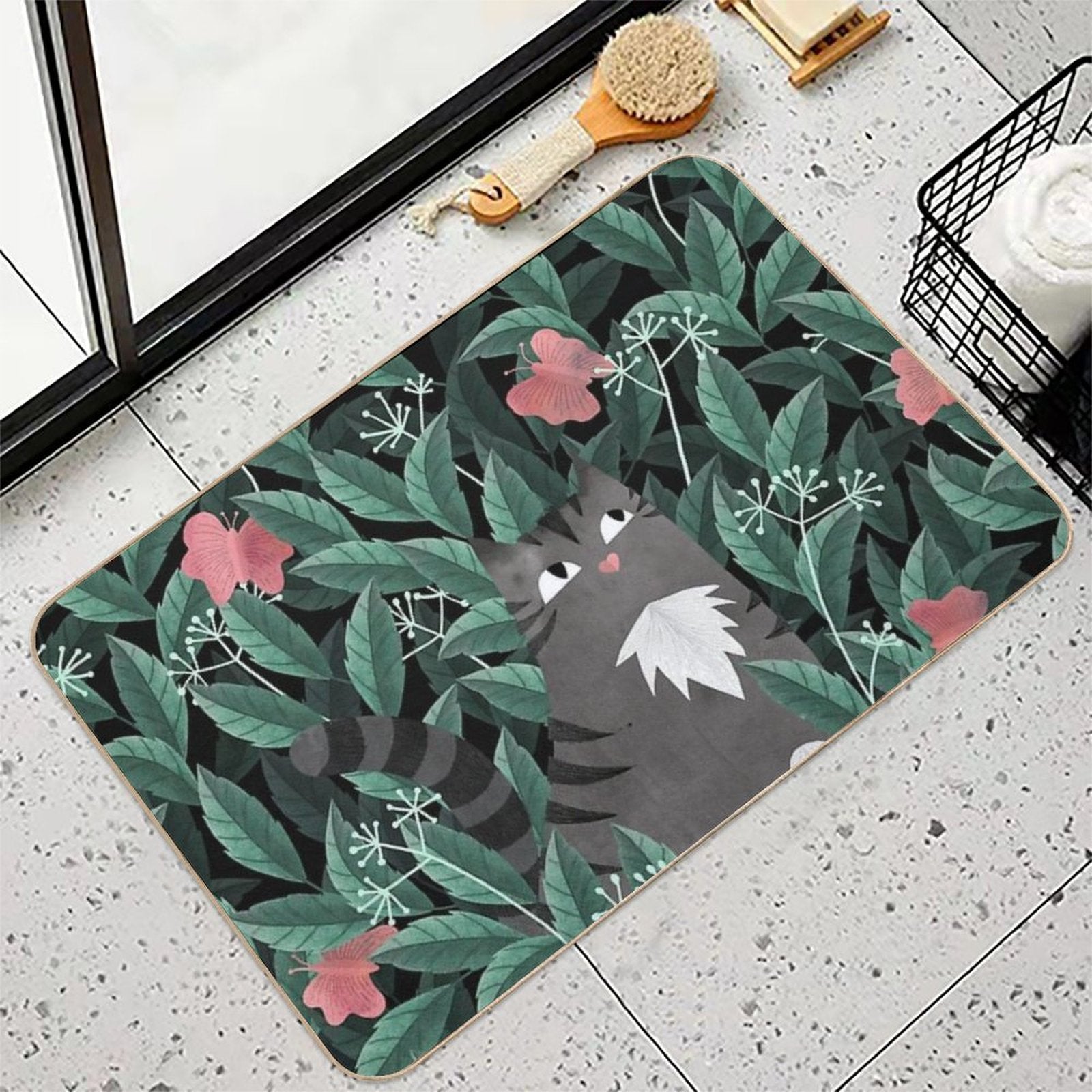 - Use as a vanity rug, guest suite accent, or mudroom defender – the Butterfly Garden (Tabby Cat Version) Mat adapts to any space.