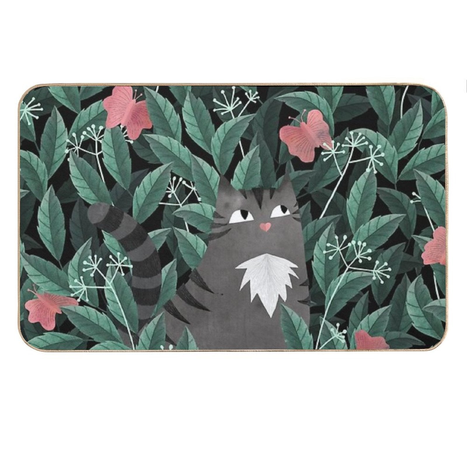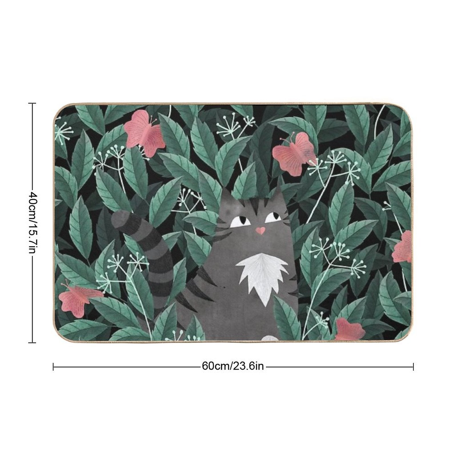 - Non-slip rubber backing grips floors securely, ideal for Butterfly Garden (Tabby Cat Version) Mat placements on tiles, wood, or marble.