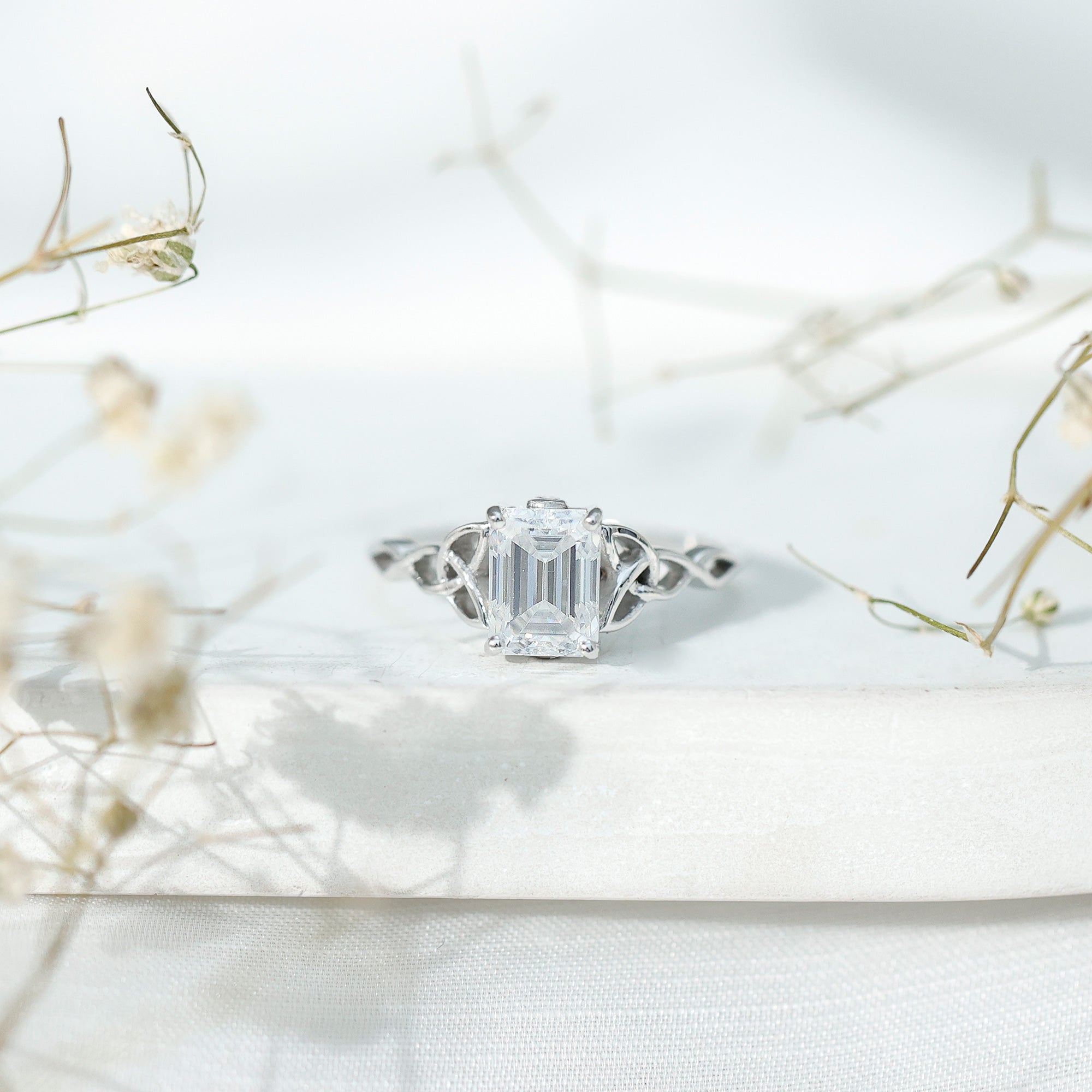 Timeless elegance meets meaningful beauty in this stunning Lab Grown Diamond Engagement Ring. Designed for beautiful love stories, it showcases a 6X8 MM emerald cut lab grown diamond held securely in prong setting. A bezel set round cut surprise diamond beneath the main stone adds a hint of secret sparkle. The band features an intricate Celtic Knot design, deeply rooted in tradition, symbolizing everlasting love and unity. This eye-catching blend of modern brilliance and vintage craftsmanship makes it more than just a ring, it represents a promise and a future, all beautifully crafted into one elegant piece. Presented in a signature jewelry box, this Emerald Cut Engagement Ring is available in various sizes, ensuring the perfect fit for every hand and heart. Ideal for proposals, weddings, or simply celebrating your unique love story, this Solitaire Diamond Engagement Ring is a piece that speaks volumes without uttering a word. If you are looking for a Celtic Design Ring that combines bold aesthetics, cultural significance, and contemporary values, your search ends here. Adorn your love with sparkle and meaning. This Emerald Cut Diamond Ring is not just an engagement ring; it marks the beginning of your next chapter.