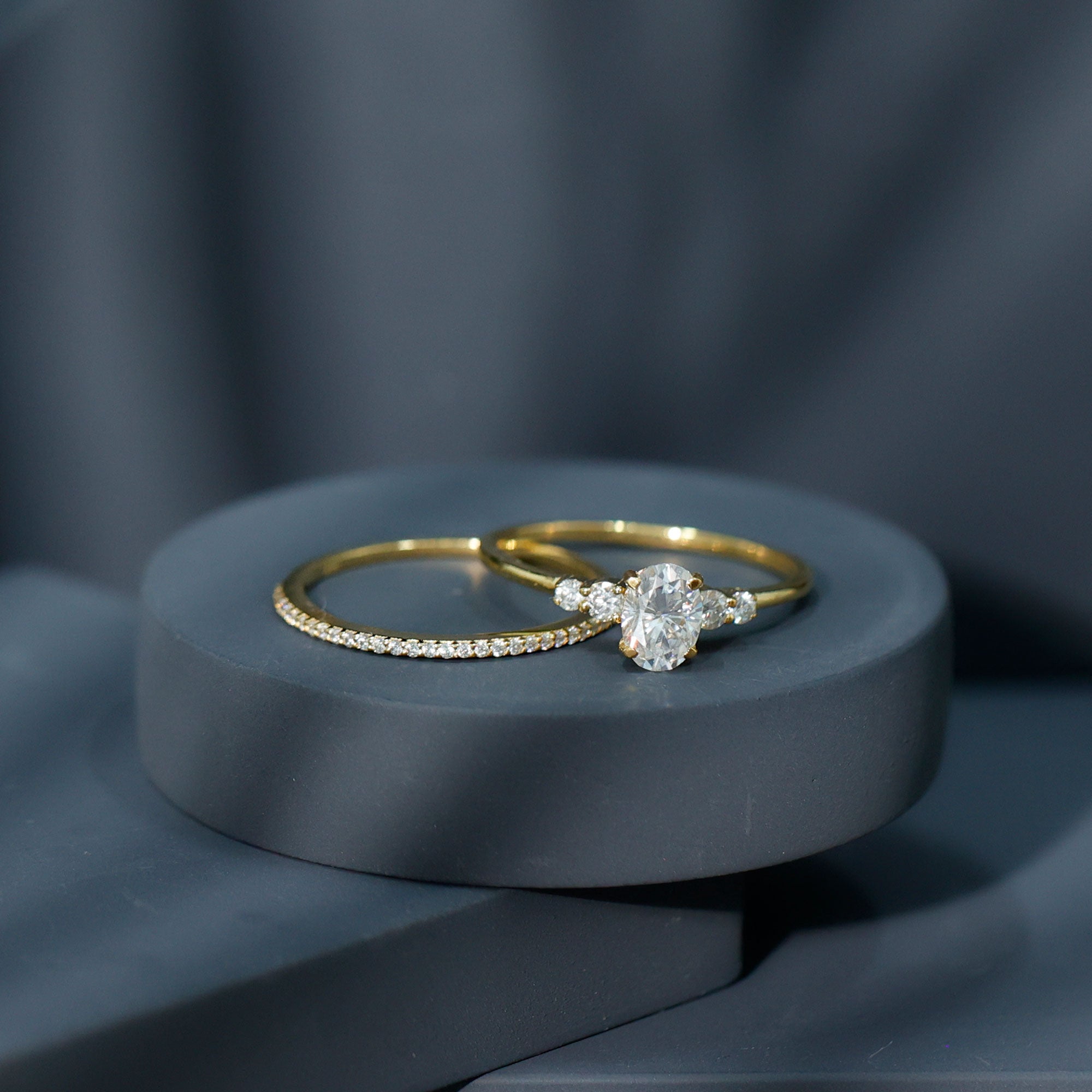 Certified 5X7 MM Oval Lab Grown Diamond Bridal Ring Set