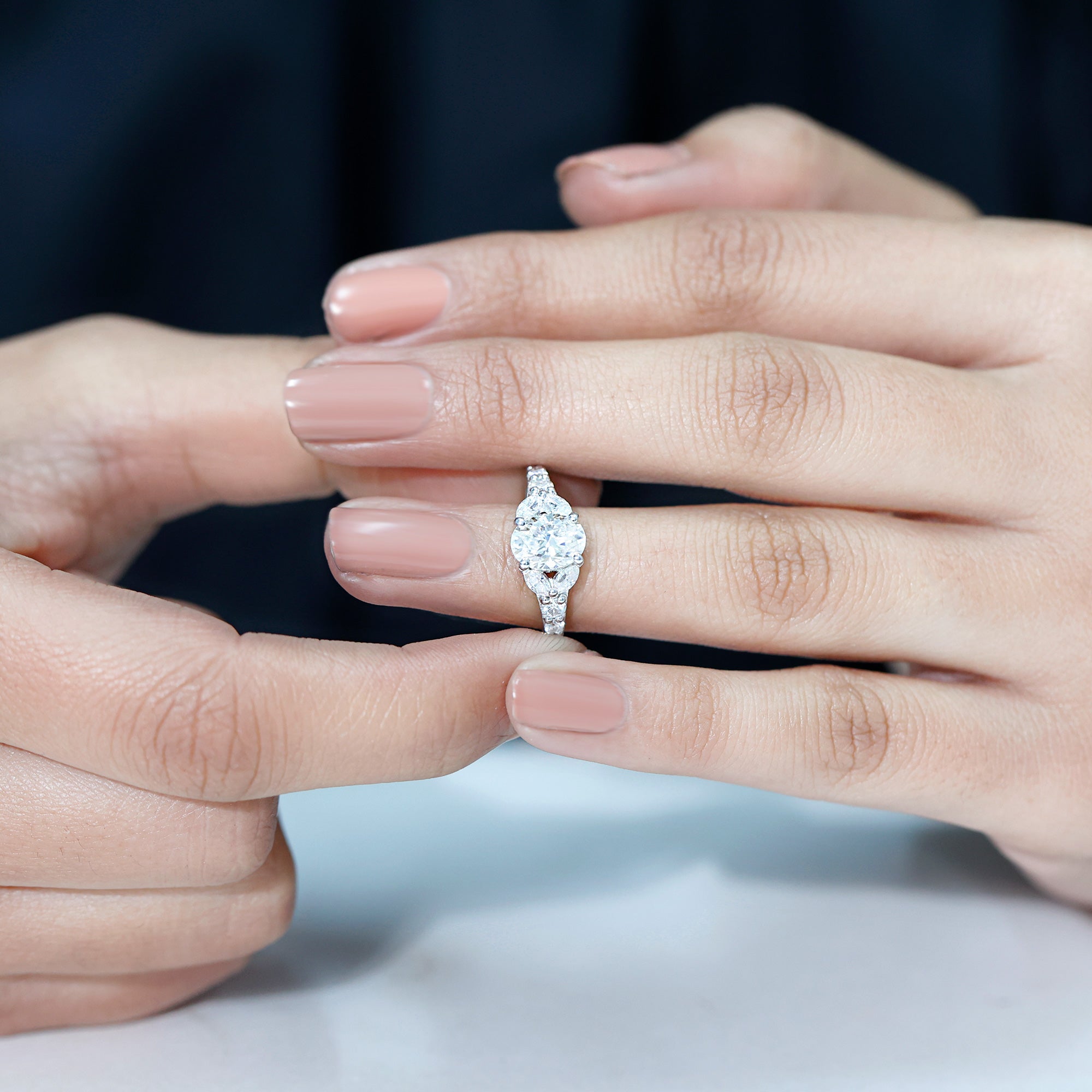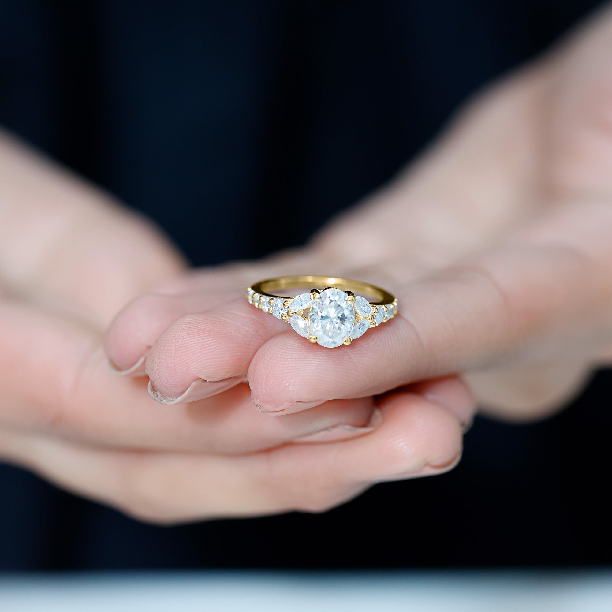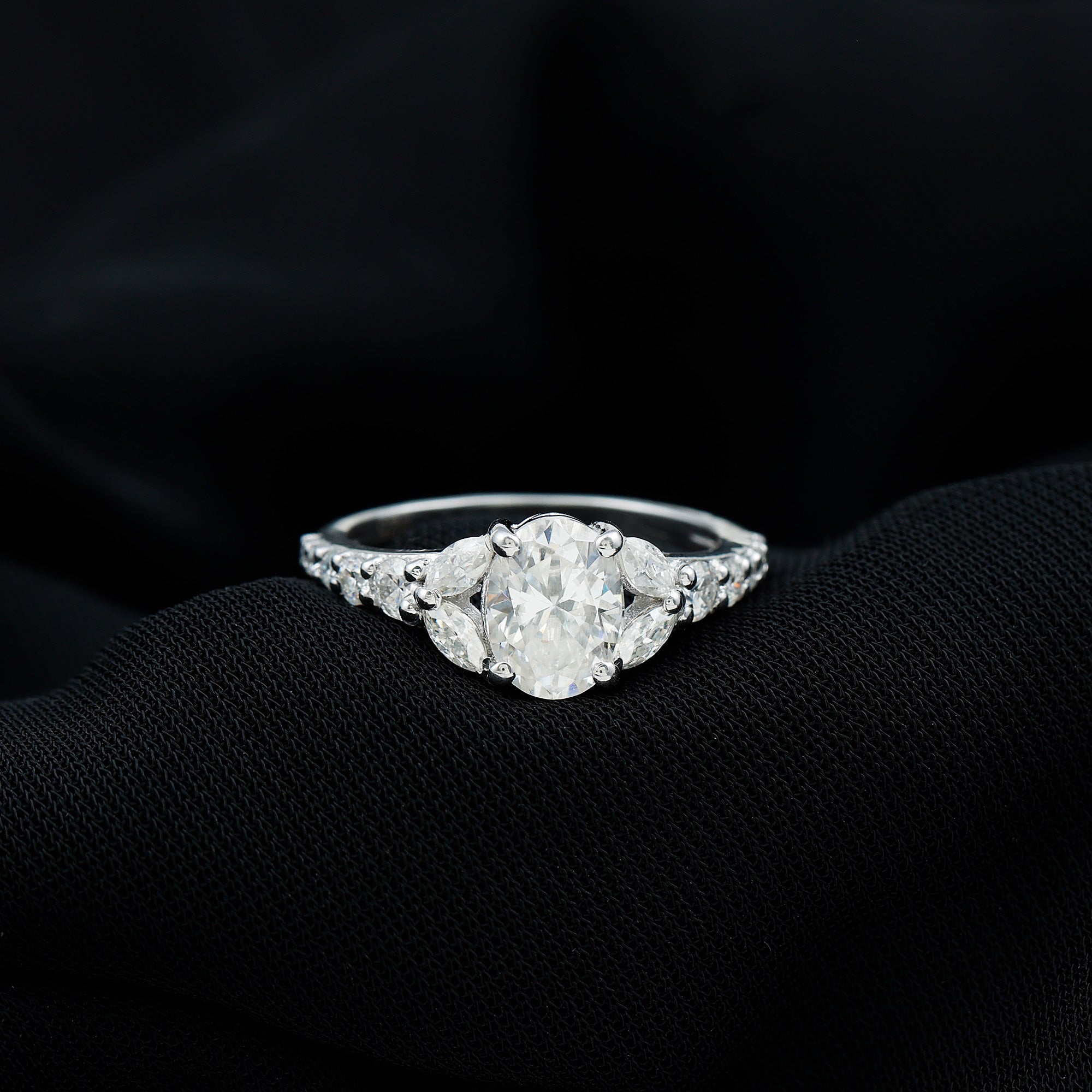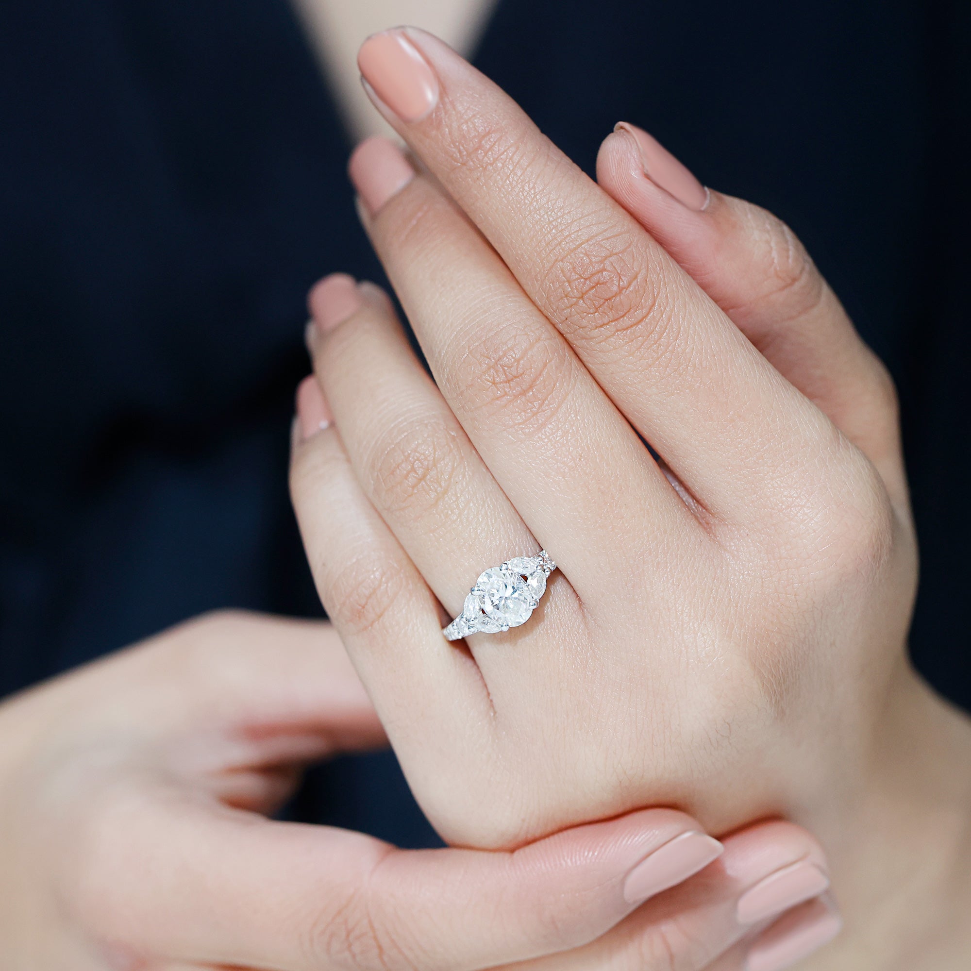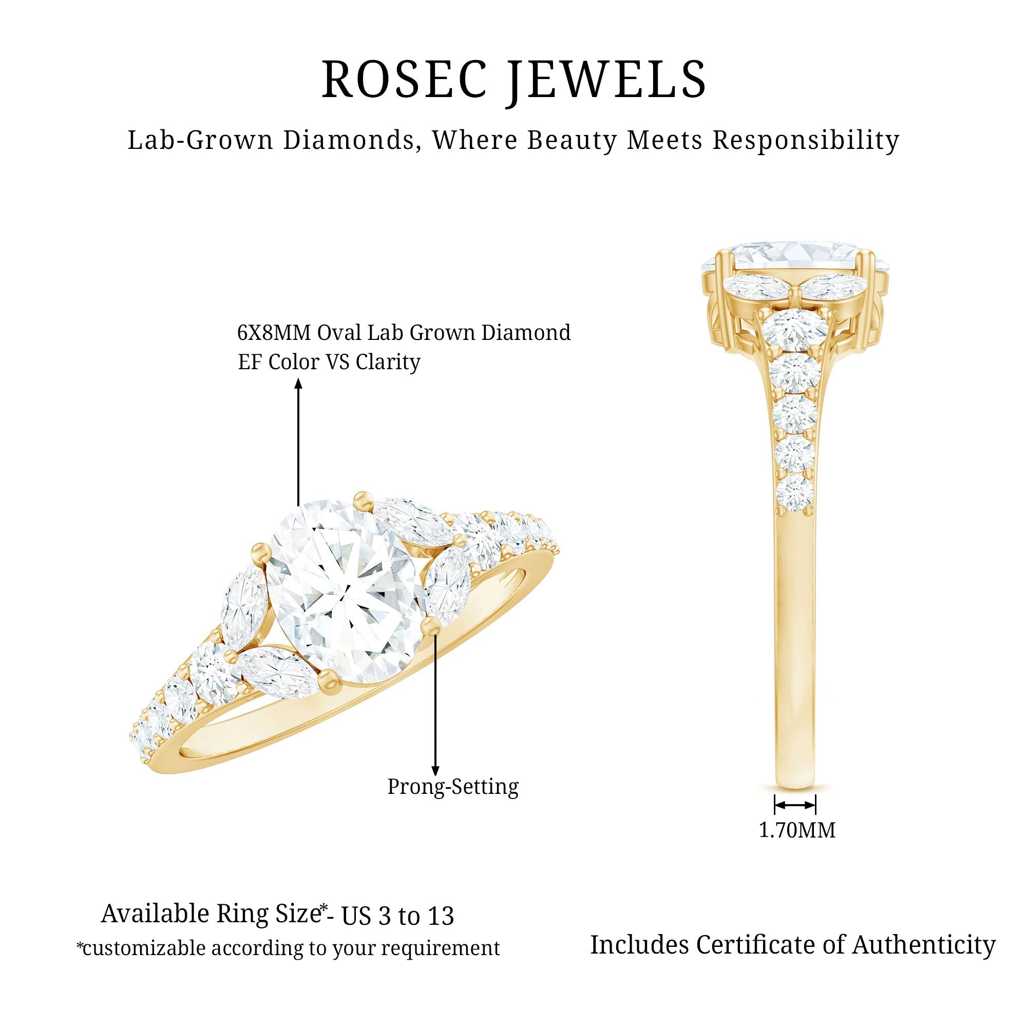 Certified 6X8MM Oval Lab Grown Diamond Engagement Ring With Side Stones