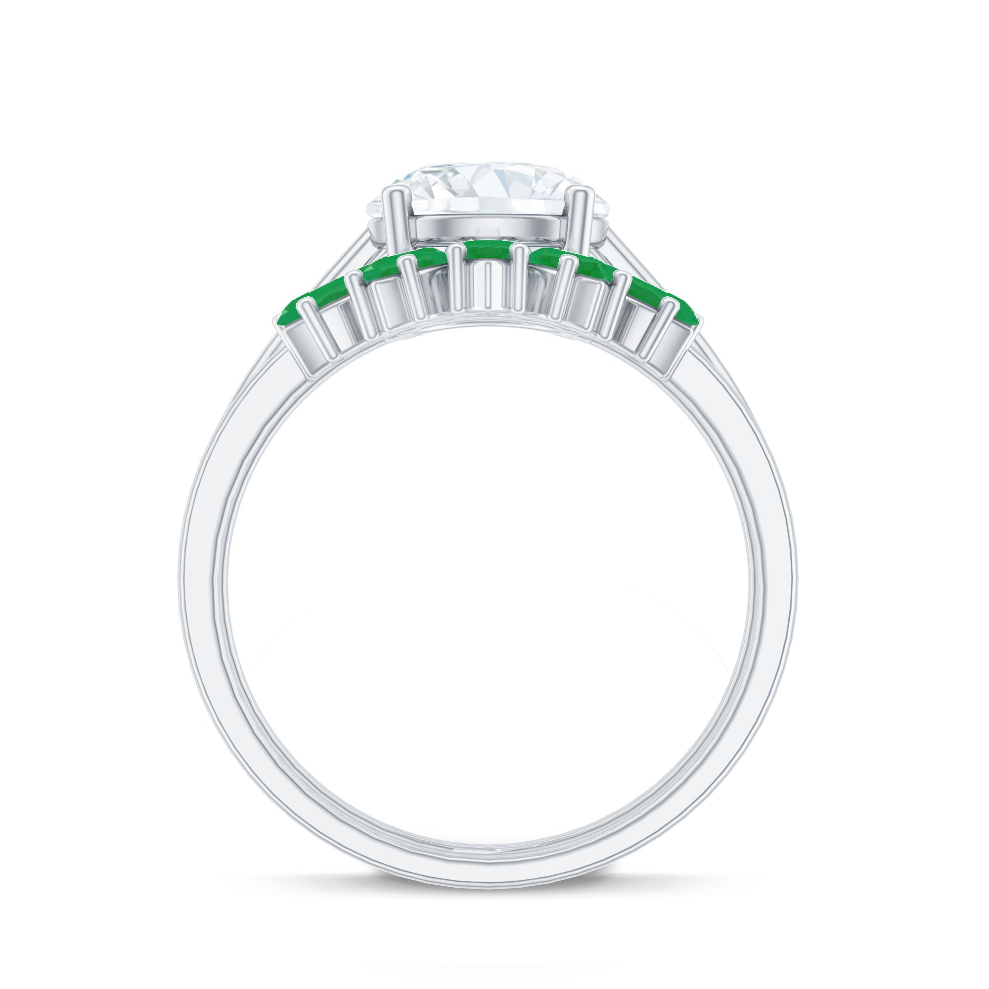 Certified 8 MM Lab Grown Diamond Engagement Ring With Emerald Wedding Band