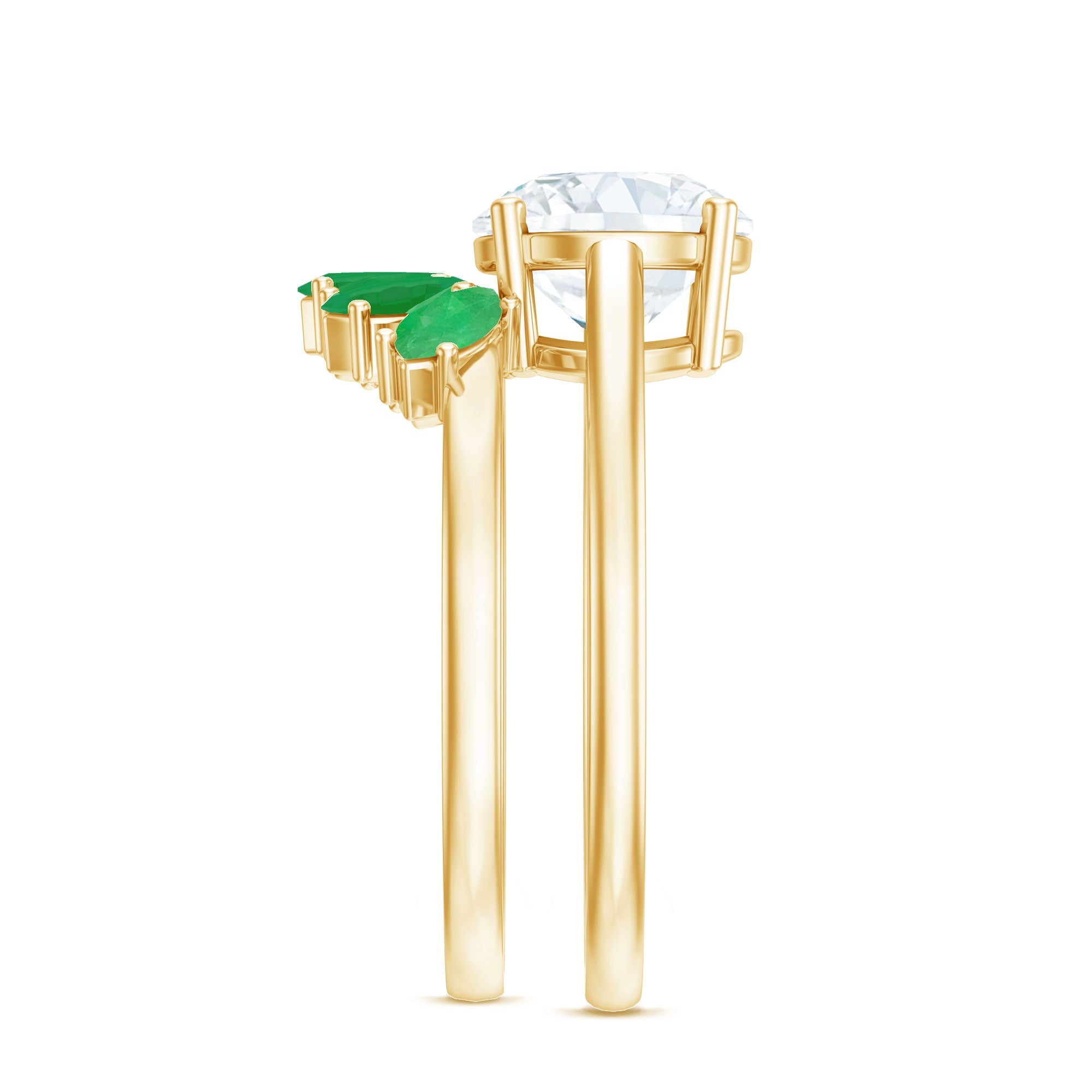 Certified 8 MM Lab Grown Diamond Engagement Ring With Emerald Wedding Band ‐ Lab - ( EF-VS ) / 14K Yellow Gold
