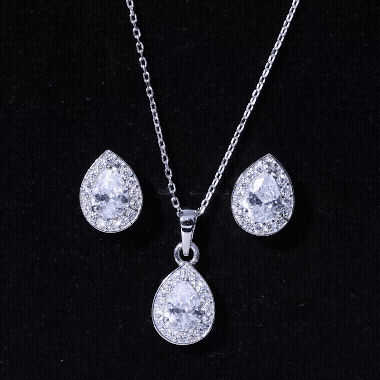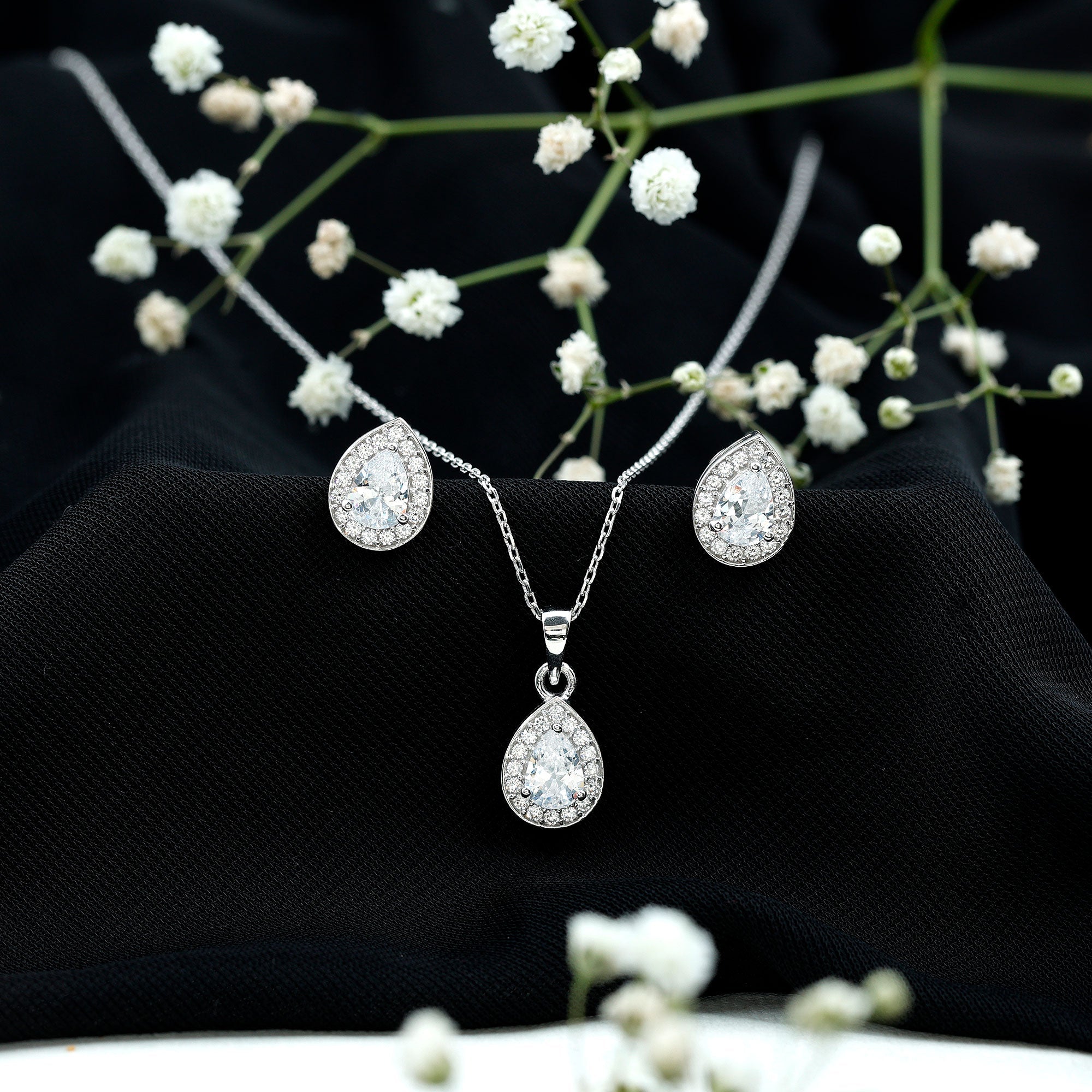 Certified CZ Diamond Teardrop Necklace and Earrings Set for Women ‐ AAAAA / 92.5 Sterling Silver