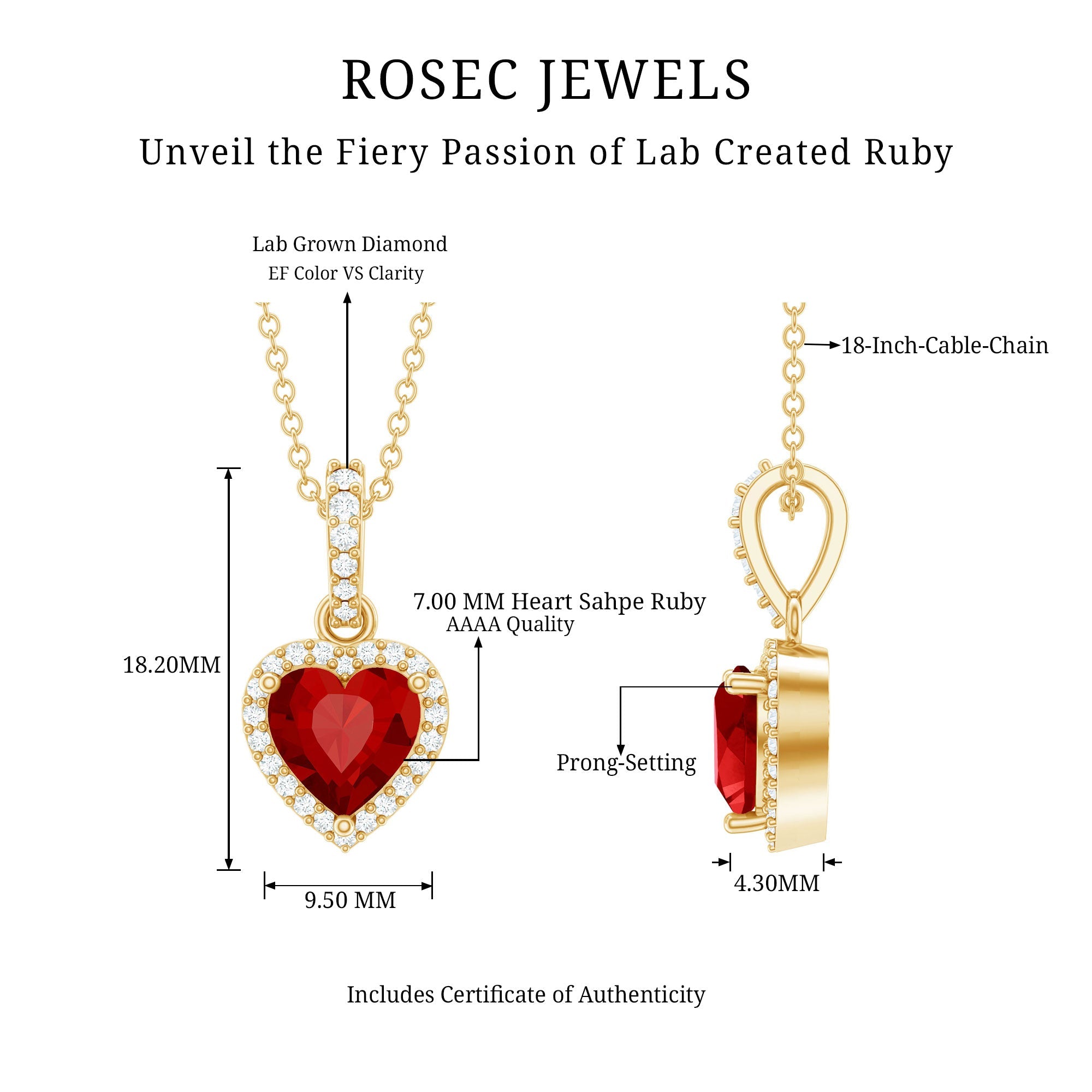 Certified Lab Created Ruby Heart Necklace with Diamond Halo