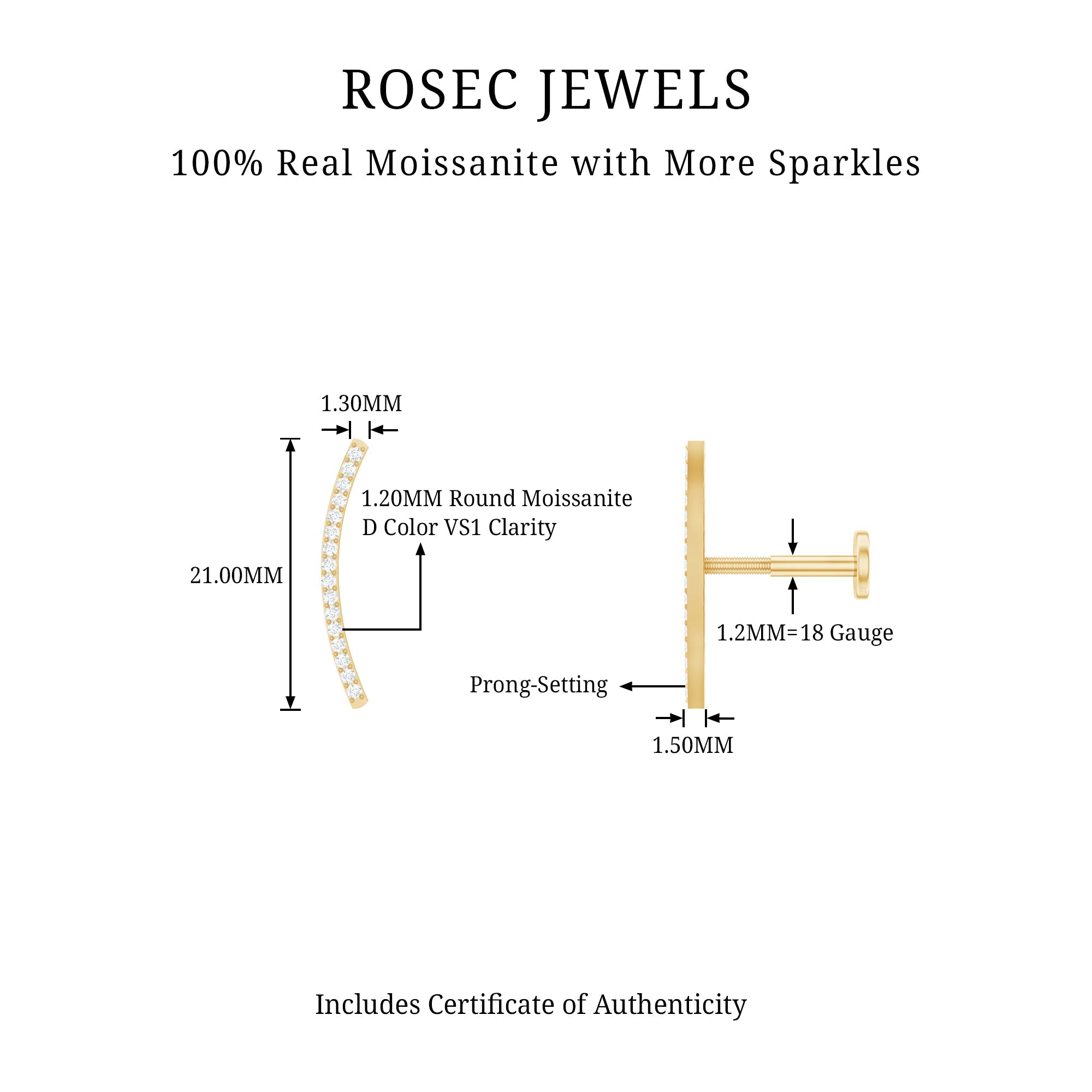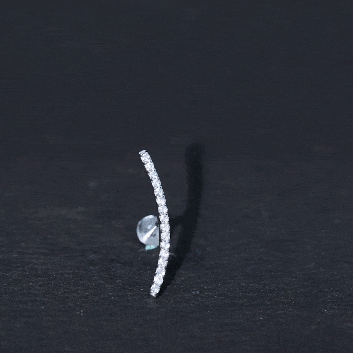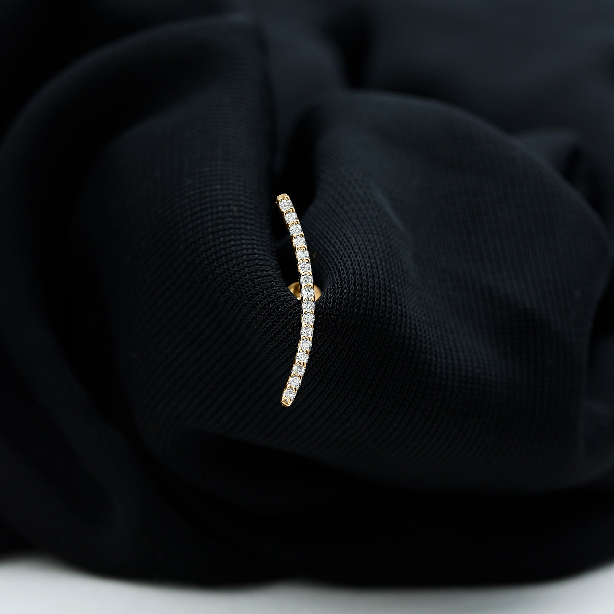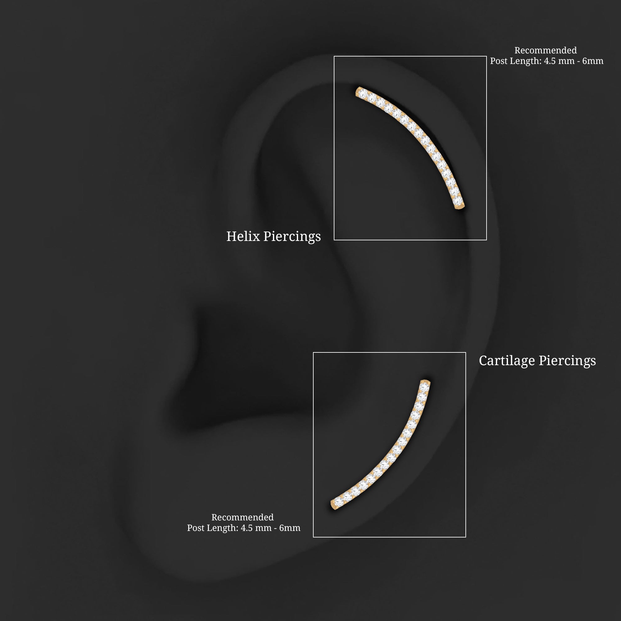 The Moissanite Curved Climber Earring is a dazzling and elegant piece of jewelry that features sparkling Round Cut Moissanites on a curved design, crafted with Gold for a shiny appearance. Style it on your Helix, Cartilage, or Upper Lobe Piercing and pair it with your favorite outfits.