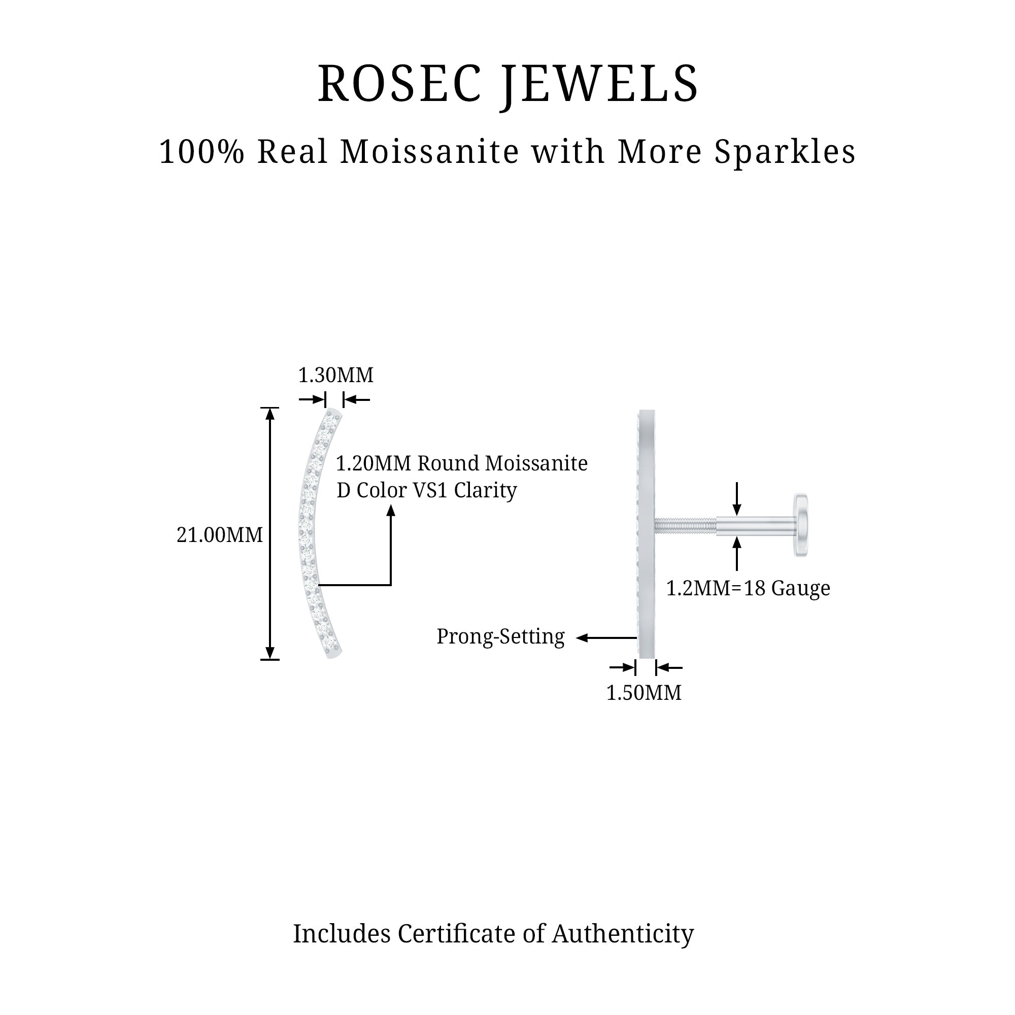 Certified Moissanite Curved Climber Earring in Gold ‐ D-VS1 / 14K White Gold / Flat Back 4.5 MM