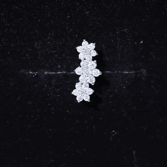 Certified Moissanite Floral Ear Climber Earring ‐ D-VS1 / 18K White Gold / Flat Back 7.5 MM