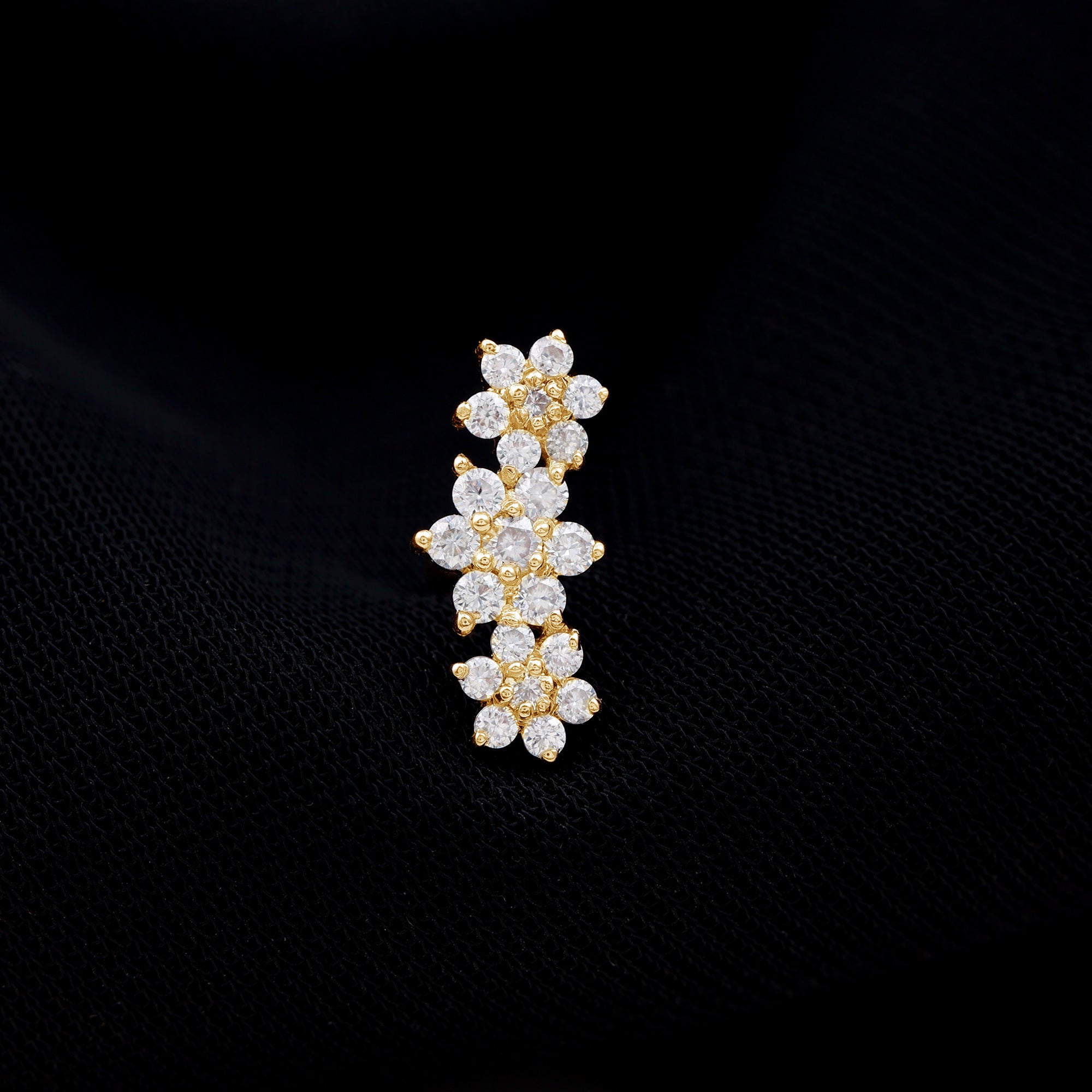 Certified Moissanite Floral Ear Climber Earring ‐ D-VS1 / 18K Yellow Gold / Flat Back 4.5 MM