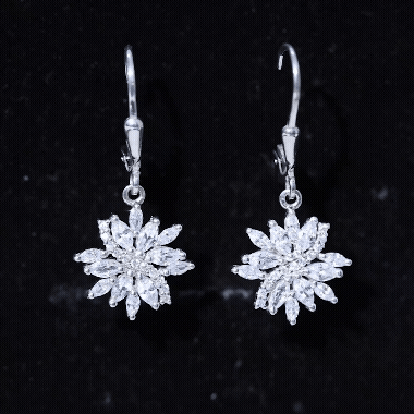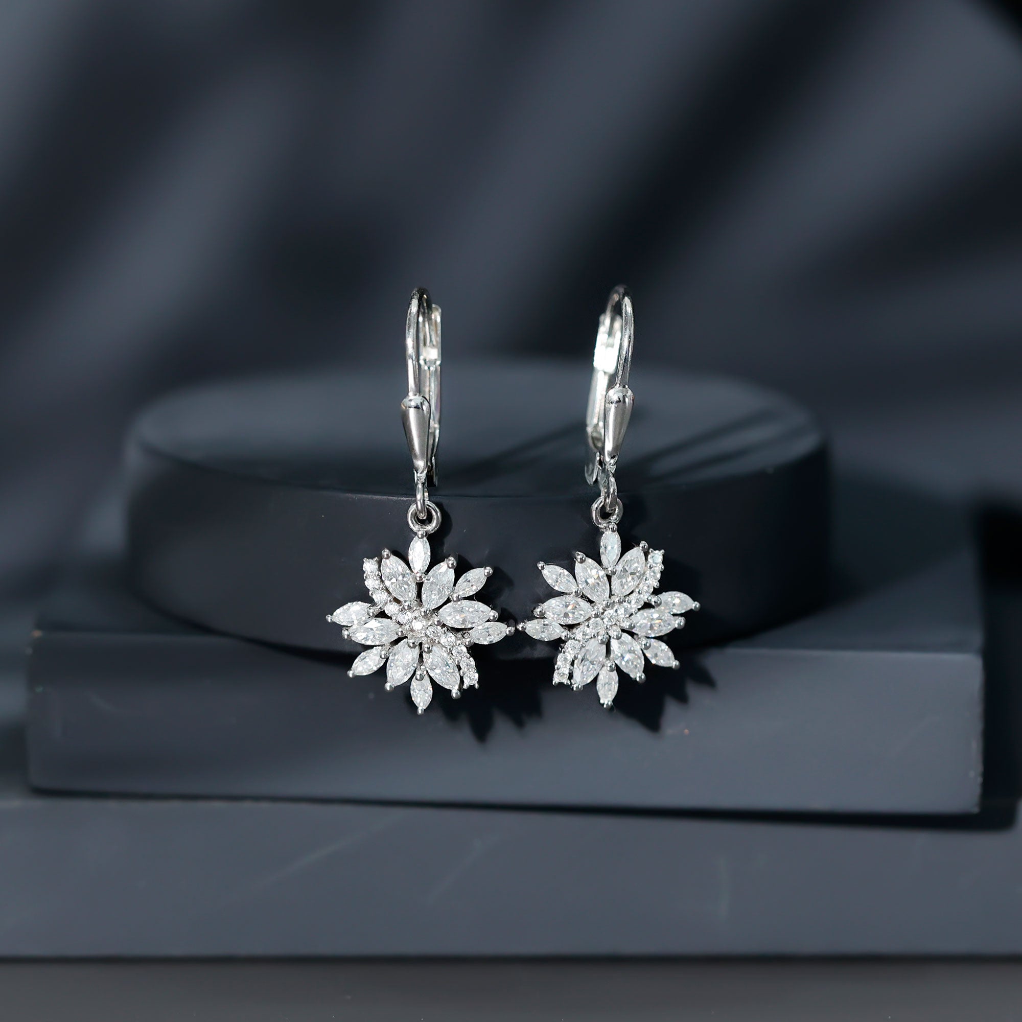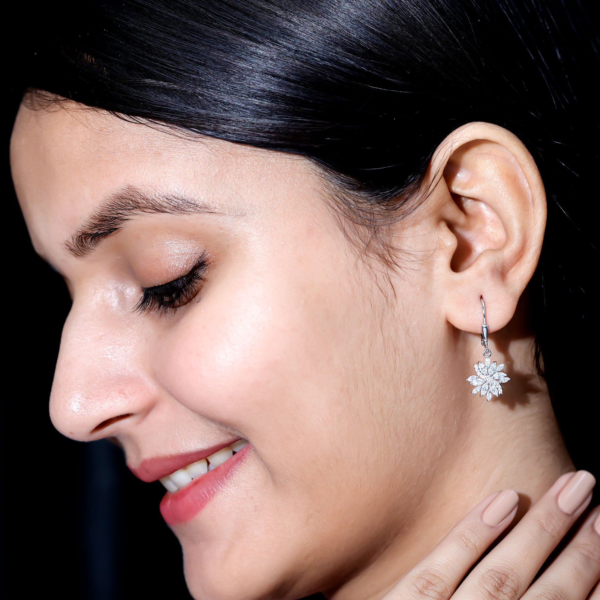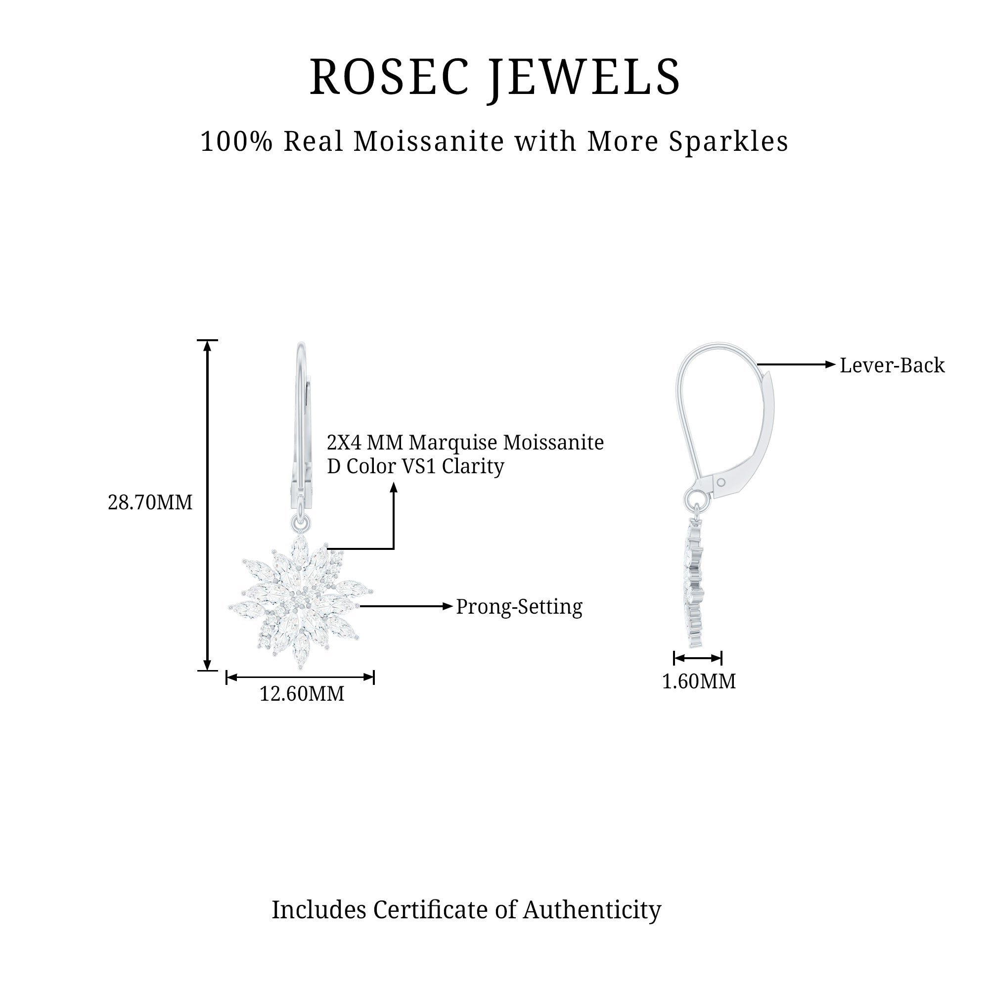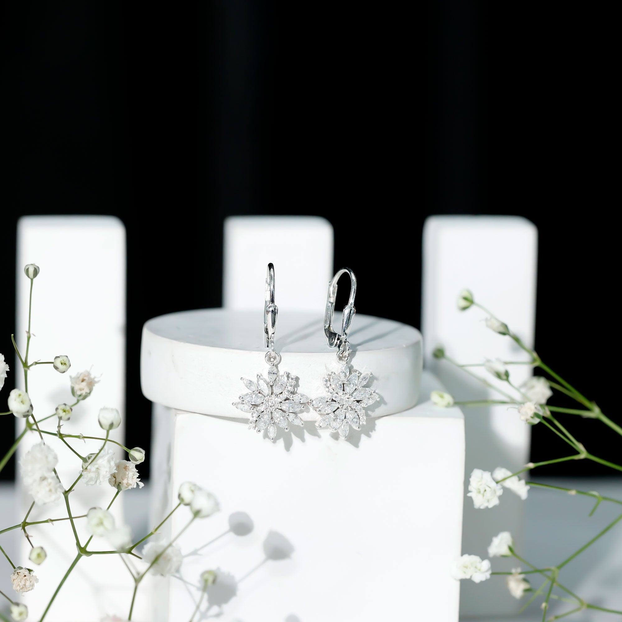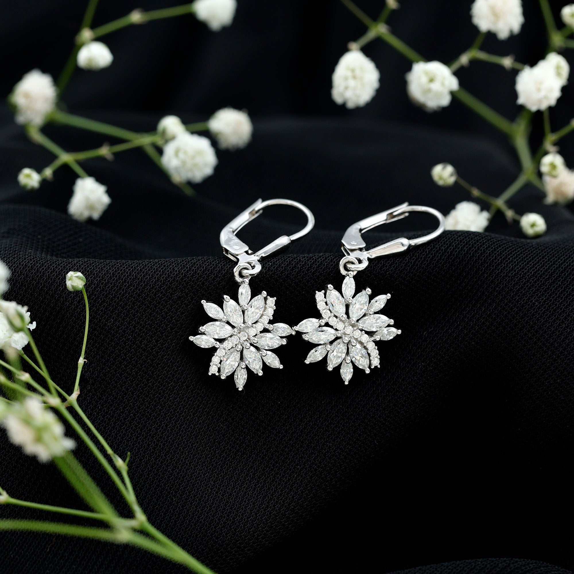 Certified Moissanite Flower Drop Earrings with Lever Back ‐ D-VS1 / 92.5 Sterling Silver