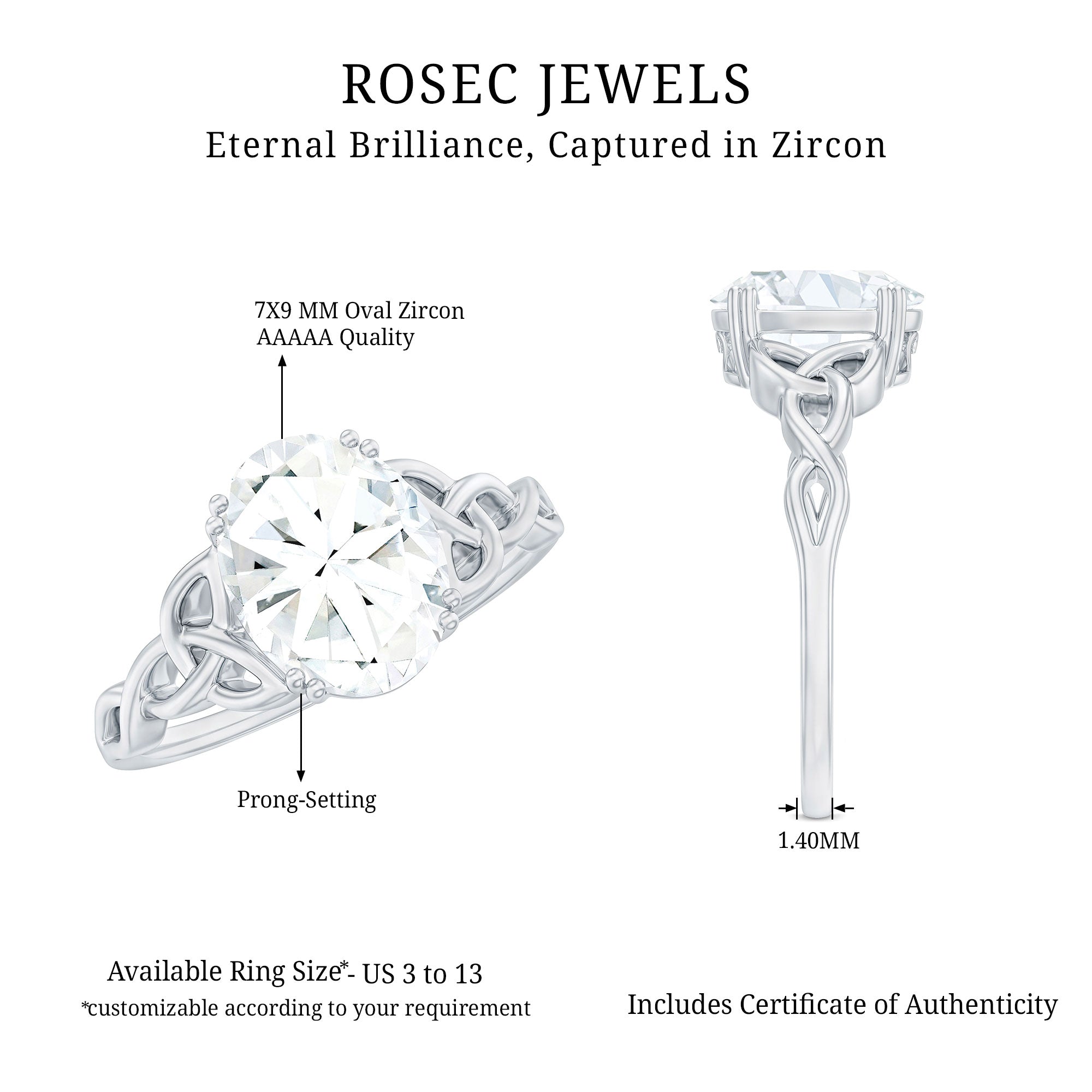Certified Oval Cut Solitaire Zirconia Celtic Engagement Ring in Silver ‐ AAAAA / 92.5 Sterling Silver / 7.5