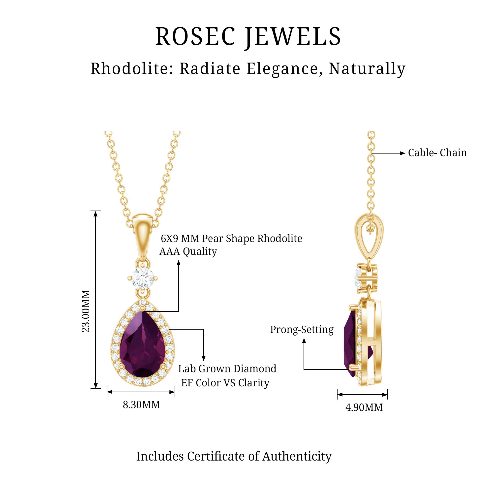 Certified Rhodolite Garnet Teardrop Necklace with Diamond Halo