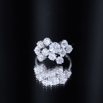 Certified Zirconia Cluster Engagement Ring in 14K Gold Plated Silver ‐ AAAAA / 92.5 Sterling Silver / 7.5