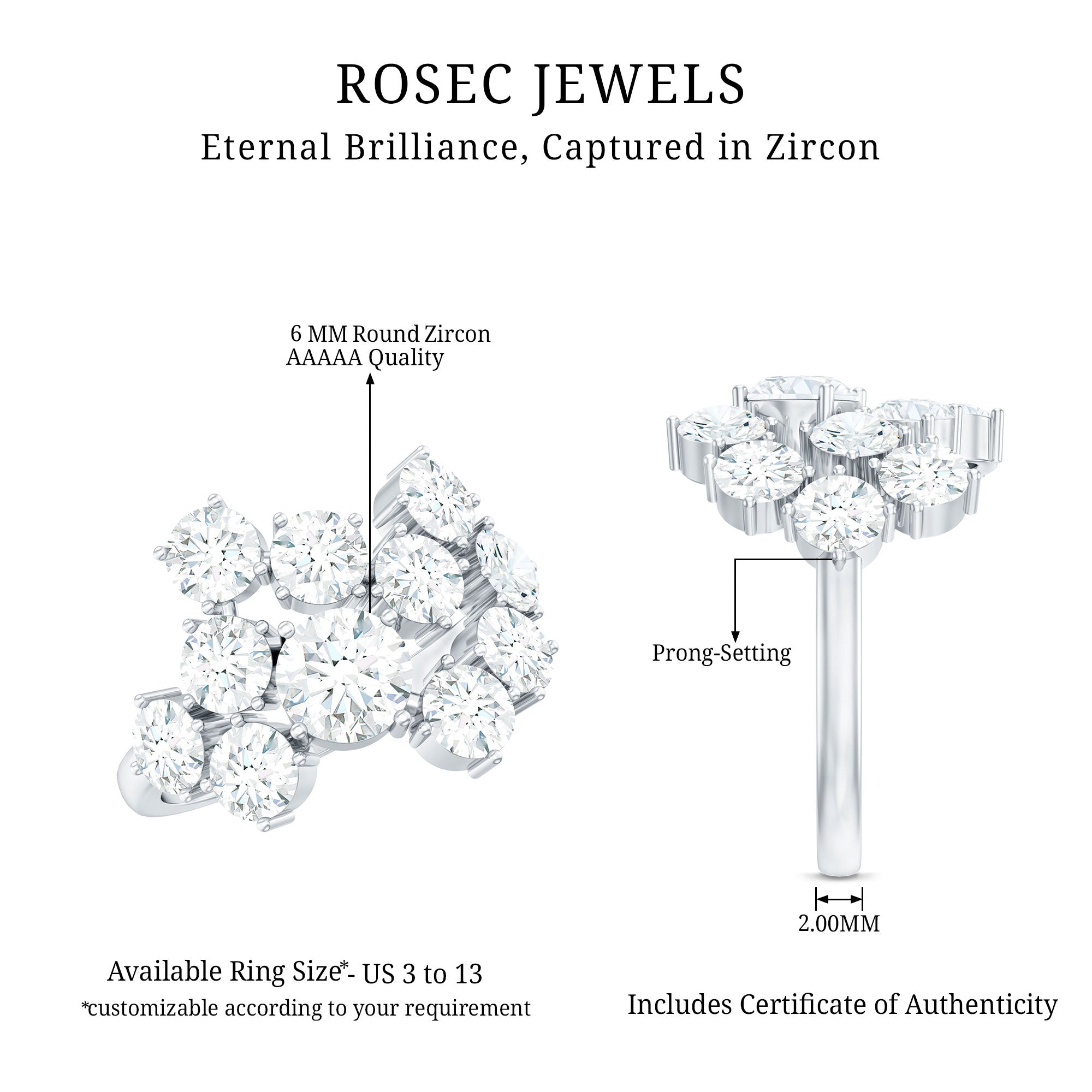 This CZ Cocktail Ring is all you want to complete a statement look to be the center of attraction. The ring is crafted with Silver and features Round Shape forming a cluster securely placed in Prong Setting. This Cluster Ring beholds the classic shine of AAAAA Quality Cubic Zirconia, making it a perfect addition to the jewelry collection. This Cubic Zirconia Ring is the perfect depiction of your elegant personality with a hint of glamour. Styling this ring will not only amplify your look but also get you compliments for an amazing choice. This Statement Ring will be delivered to you in a velvet pouch for safe and secure storage, along with a certificate of authenticity.
