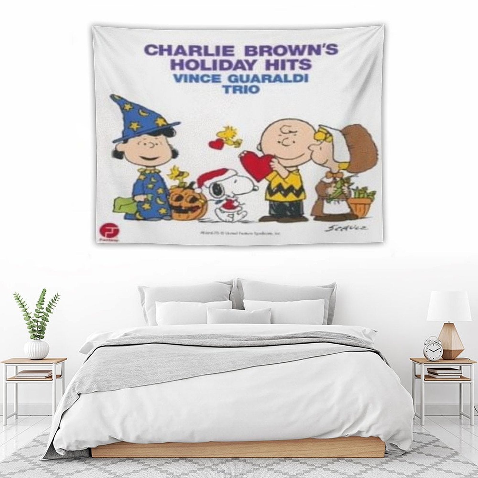 BionZax's Charlie Brown’s Holiday Hits Tapestry for Bedroom, College Dorm. Charlie Brown’s Holiday Hits Tapestry to decorate your bedroom, college dorm, living room, or kitchen wall, it is the best gift for funny, meme, aesthetic, trendy, simple, fashion, music, abstract, fantasy, modern tapestry for girls, men, boys, teen, women, kids.