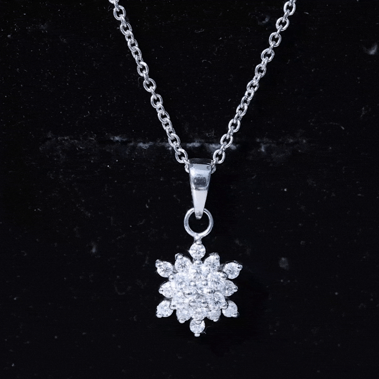 Look cool even on the hottest day with our one and only sparkling Moissanite Pendant Necklace. While embracing the natures beauty of winter, it carries the meaning of uniqueness and rebirth. Capture the mesmerizing allure and symbolism with the Round Shape Certified Moissanite arranged in a cluster form in secure prong setting. Shine bright with the icy sparkle, this beauty is inspired by the frozen motif to make great symbolic jewelry for the one you care about. Give the outfit a dose of shine through this one-of-a-kind enchanted Snowflake Pendant that shines with strong and enchanting brilliance. This Statement Necklace is crafted in 14k white gold plated silver, sure to make an impression and showing it has power in beauty, which is majestic and cool. This radiant Winter Necklace suspends from a sturdy cable chain, giving your neckline a captivating look. It is the ideal birthday gift for her, a sweet Valentine’s Day surprise for your girlfriend, or a thoughtful Christmas present for mom - this Moissanite Snowflake Necklace is sure to light up their faces. It is versatile enough to complement any outfit, whether you are wearing a casual dress or a partywear gown. This Snowflake Jewelry is a timeless piece for your collection that will be cherished for years to come.