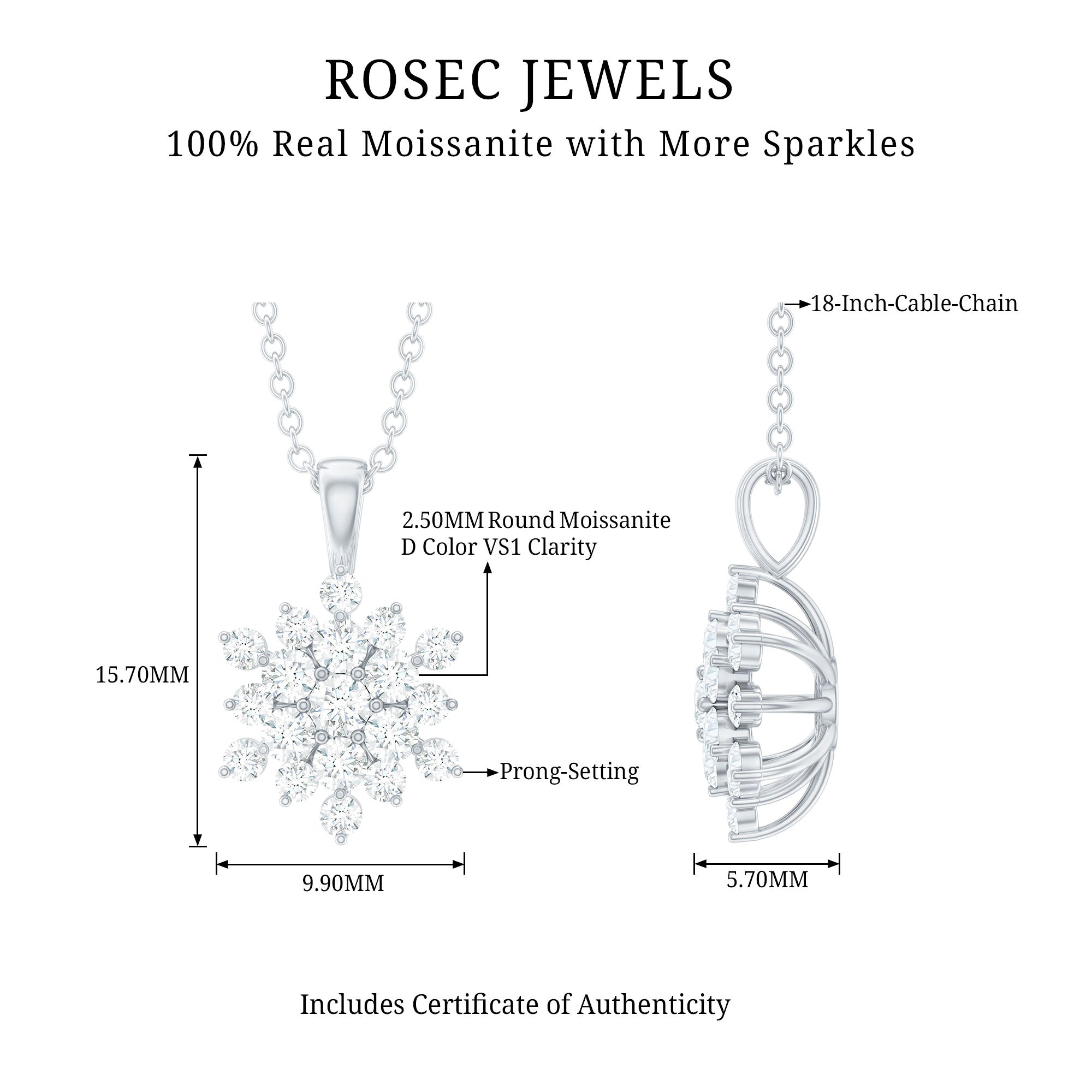 Cluster Moissanite Snowflake Flower Necklace with Silver Chain ‐ D-VS1 / 92.5 Sterling Silver