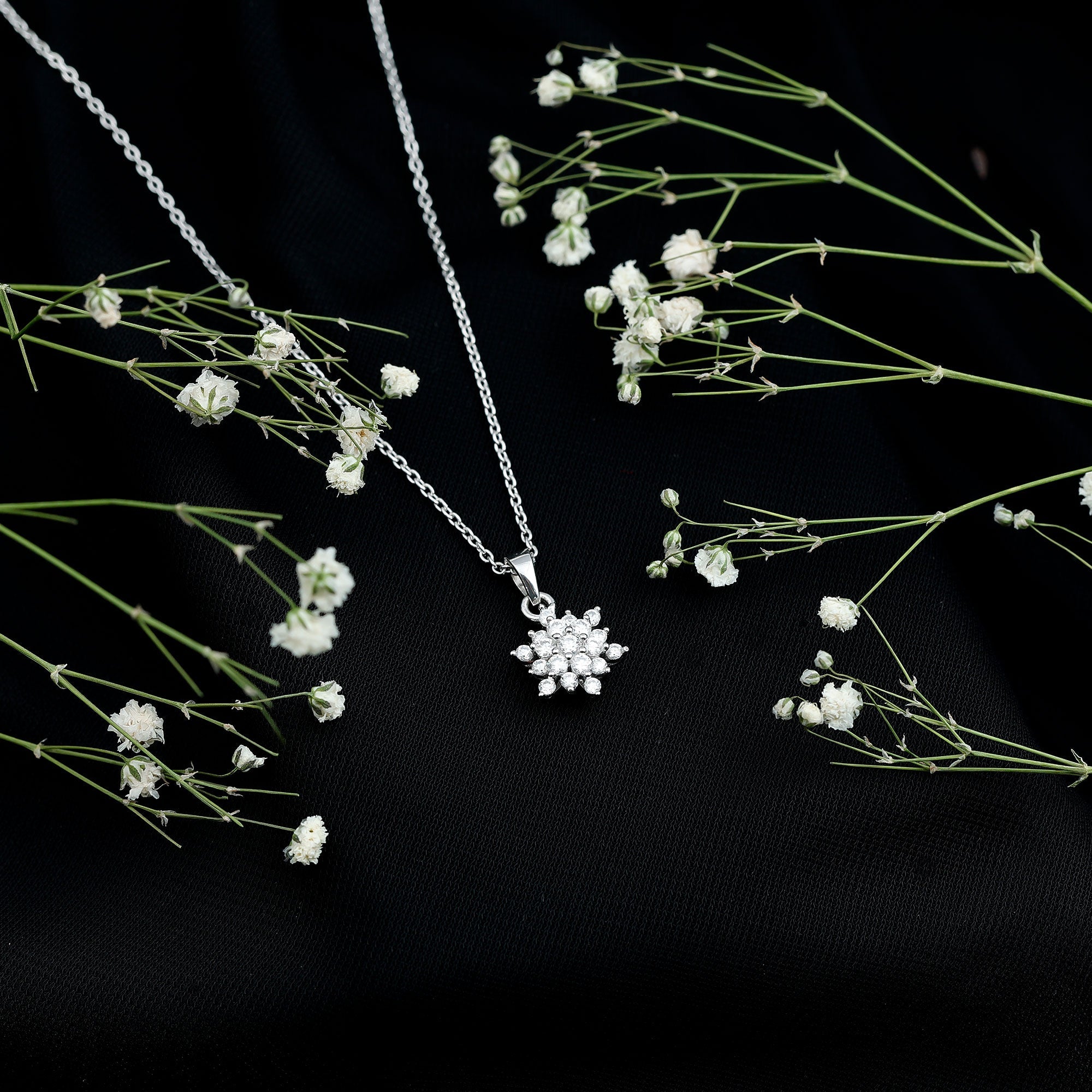 Cluster Moissanite Snowflake Flower Necklace with Silver Chain