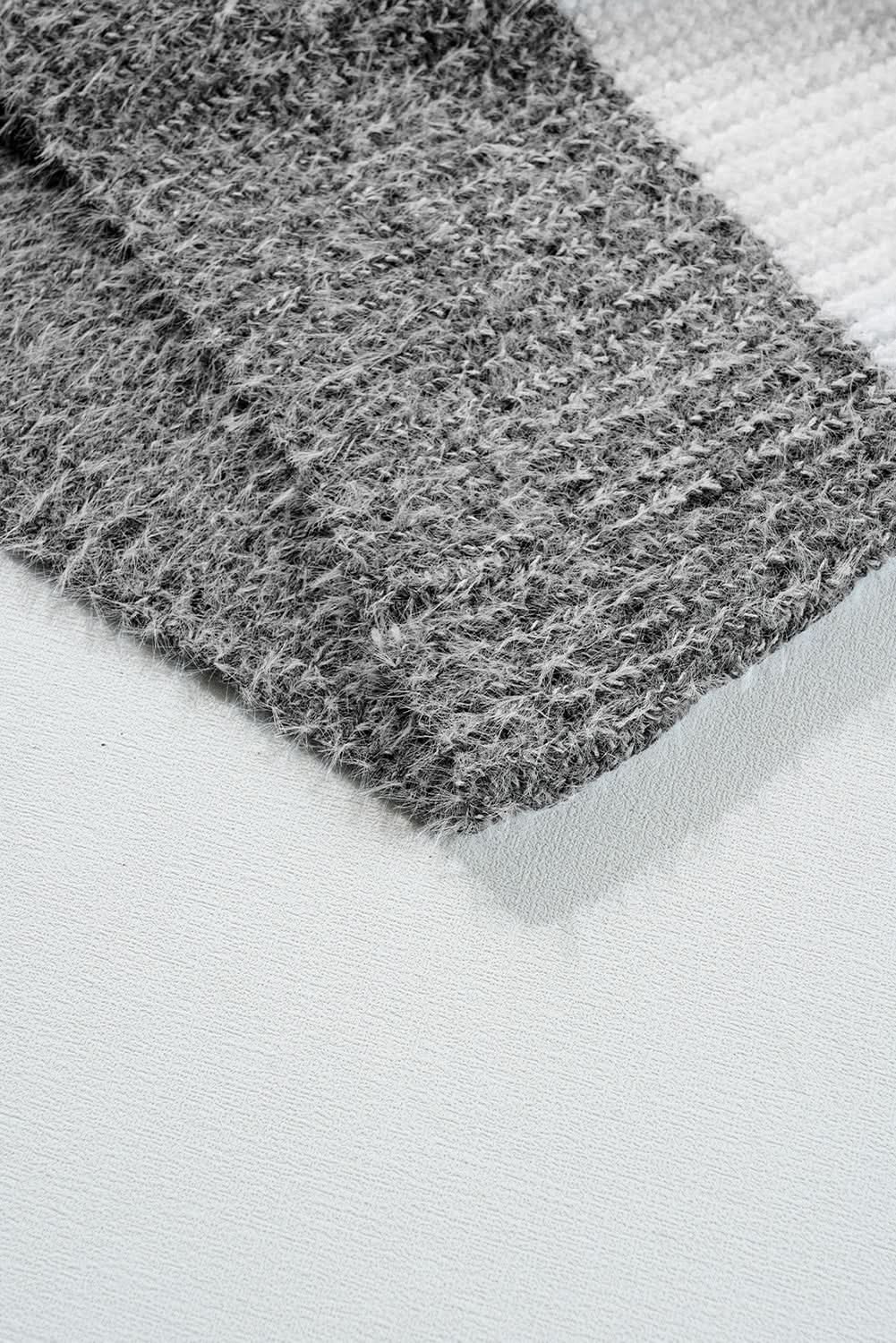 Love Salve Colorblock Knitted Dress Women's Casual Sweater Dress Bubble Sleeve Soft ‐ Gray Stripe / S / 55%Acrylic+45%Polyamide