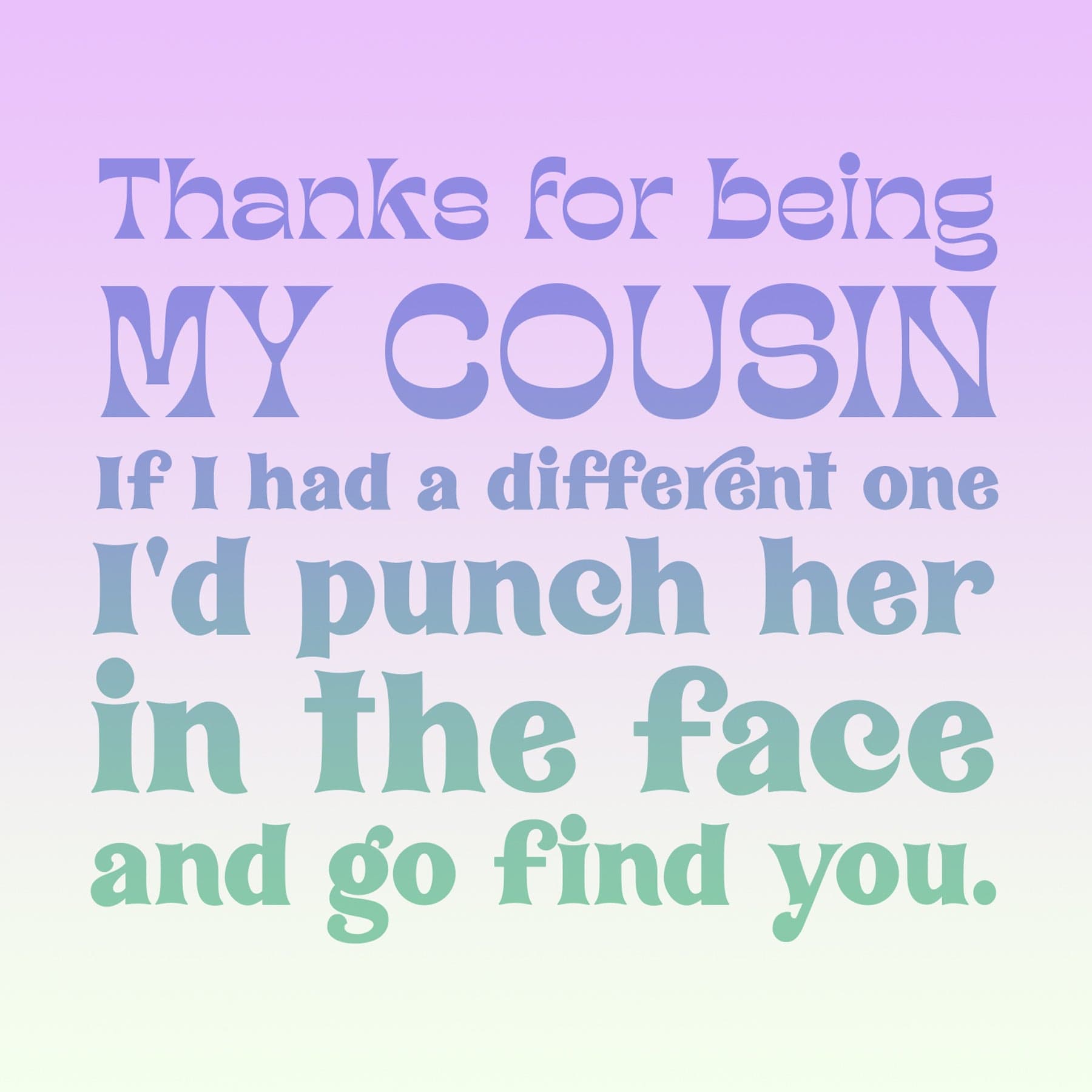 Cousins Quote: Thanks for being MY COUSIN If I had a different one I'd punch her in the face and go find you.