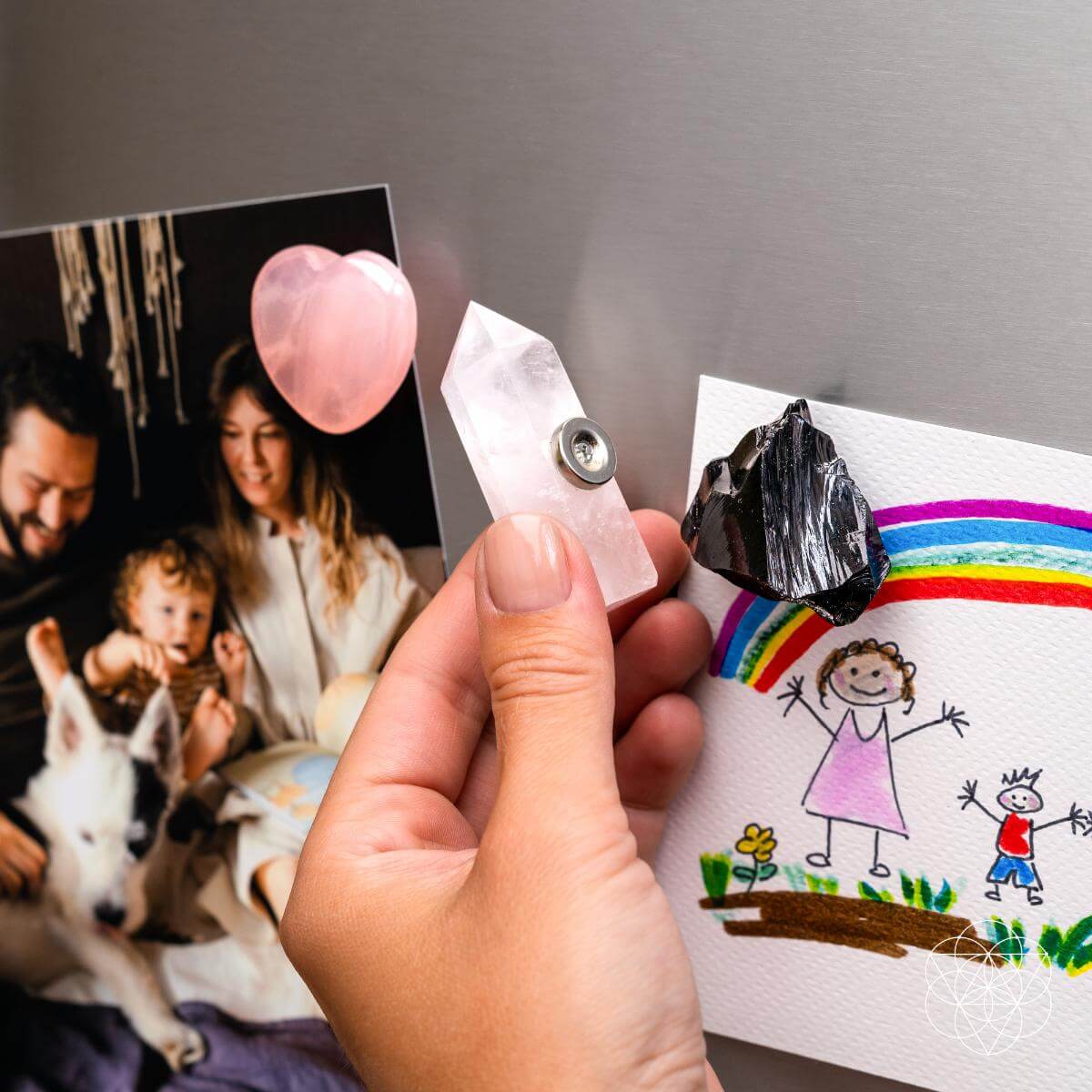 Where do you seek peace and positivity? Invite the protective powers of Rose Quartz, Black Obsidian, and Clear Quartz. Place these crystal magnets where you need them most. And let them attract divine energy to your space.