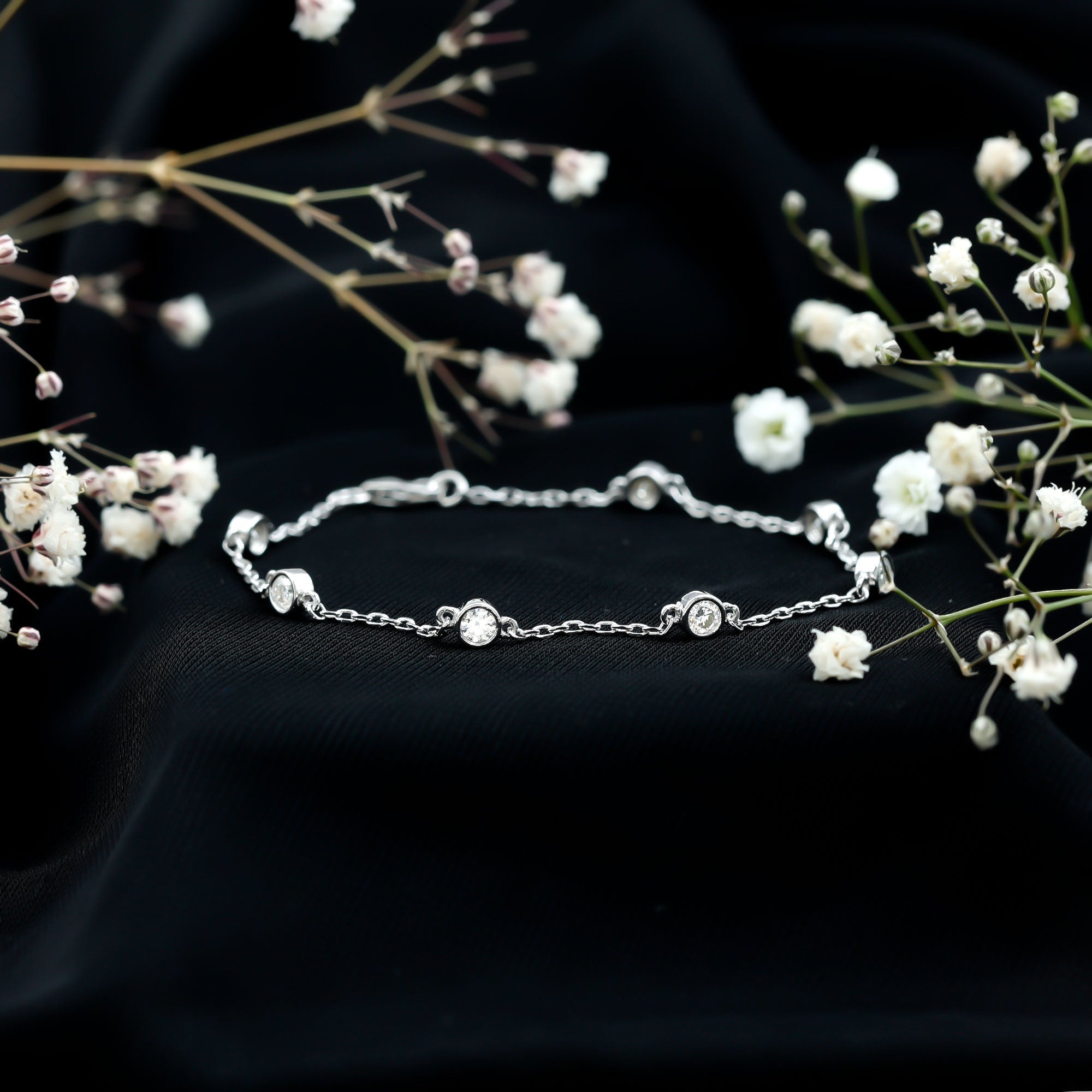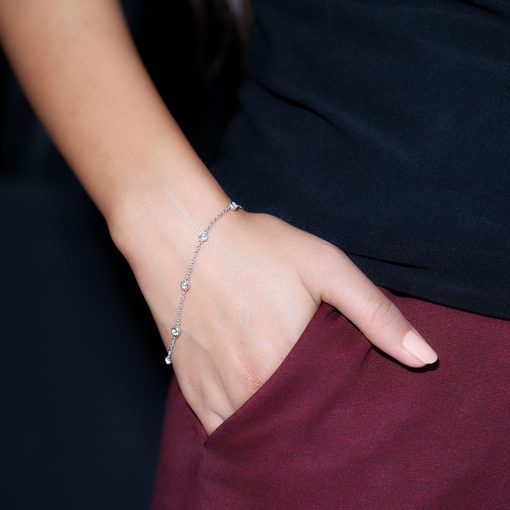 Welcome to a realm where your individuality shines through the beauty of stones. Our Cubic Zirconia Bracelet serves as a delicate tribute to your uniqueness and grace. It features 3 MM round cut cubic zirconia stones securely set in bezel setting, evenly spaced along a cable chain that radiates sophistication, casting a dance of light with every gesture. Each simulated diamond is carefully handpicked for its outstanding AAAAA quality, guaranteeing a flawless exhibition of brilliance. This remarkable Bezel Set Bracelet is handcrafted in 14k white gold plated silver, creating a timeless heirloom jewelry piece. Designed to complement all wrist sizes, it is ideal for both professional gatherings and outings with friends. This Silver Chain Bracelet will become your essential accessory for any event. Embrace elegance and sophistication with this Minimalist Stackable Bracelet, a classic item that transcends fleeting trends.