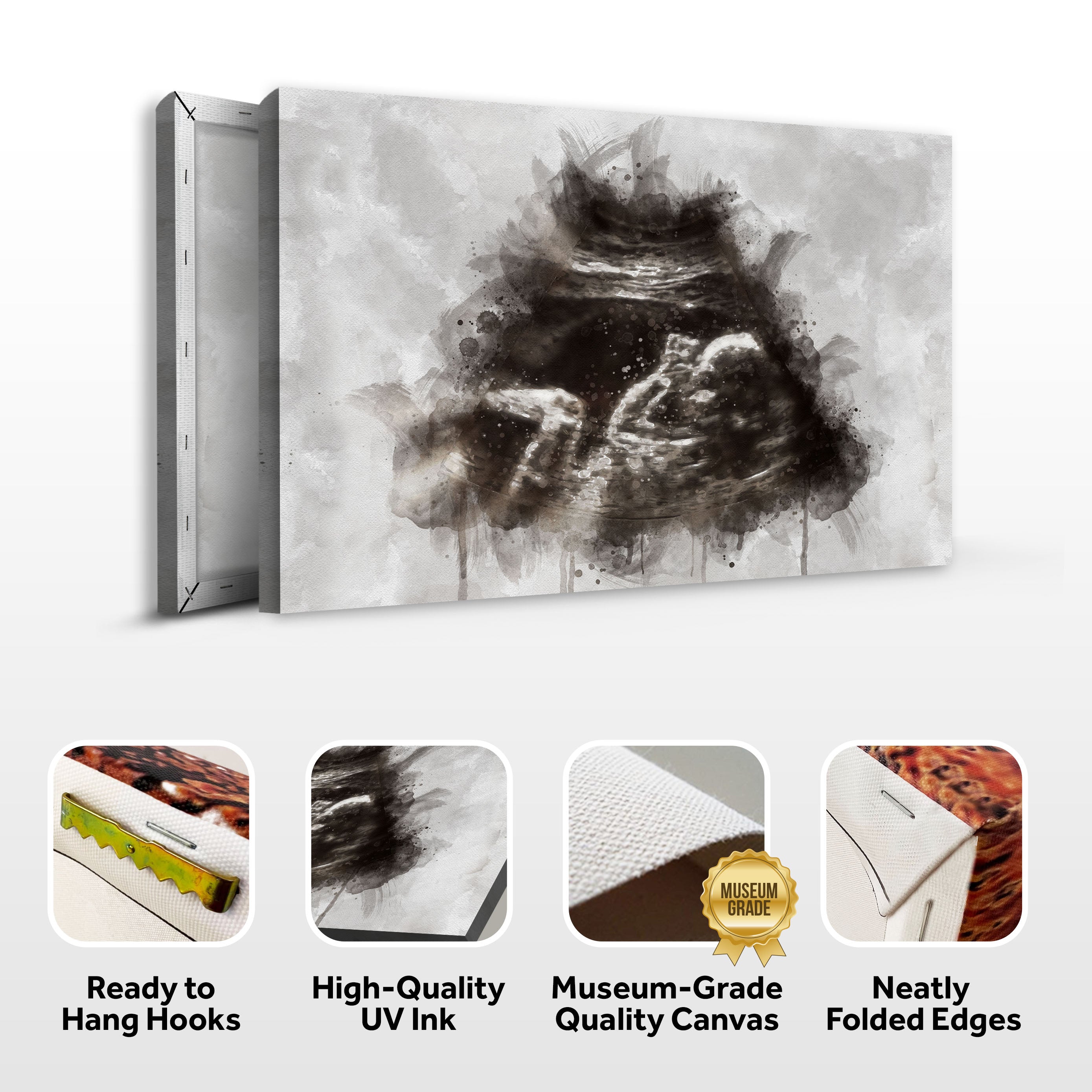 Custom Baby Ultrasound Watercolor Portrait ‐ 36x24 inch Extra Large Premium Gallery Wrapped