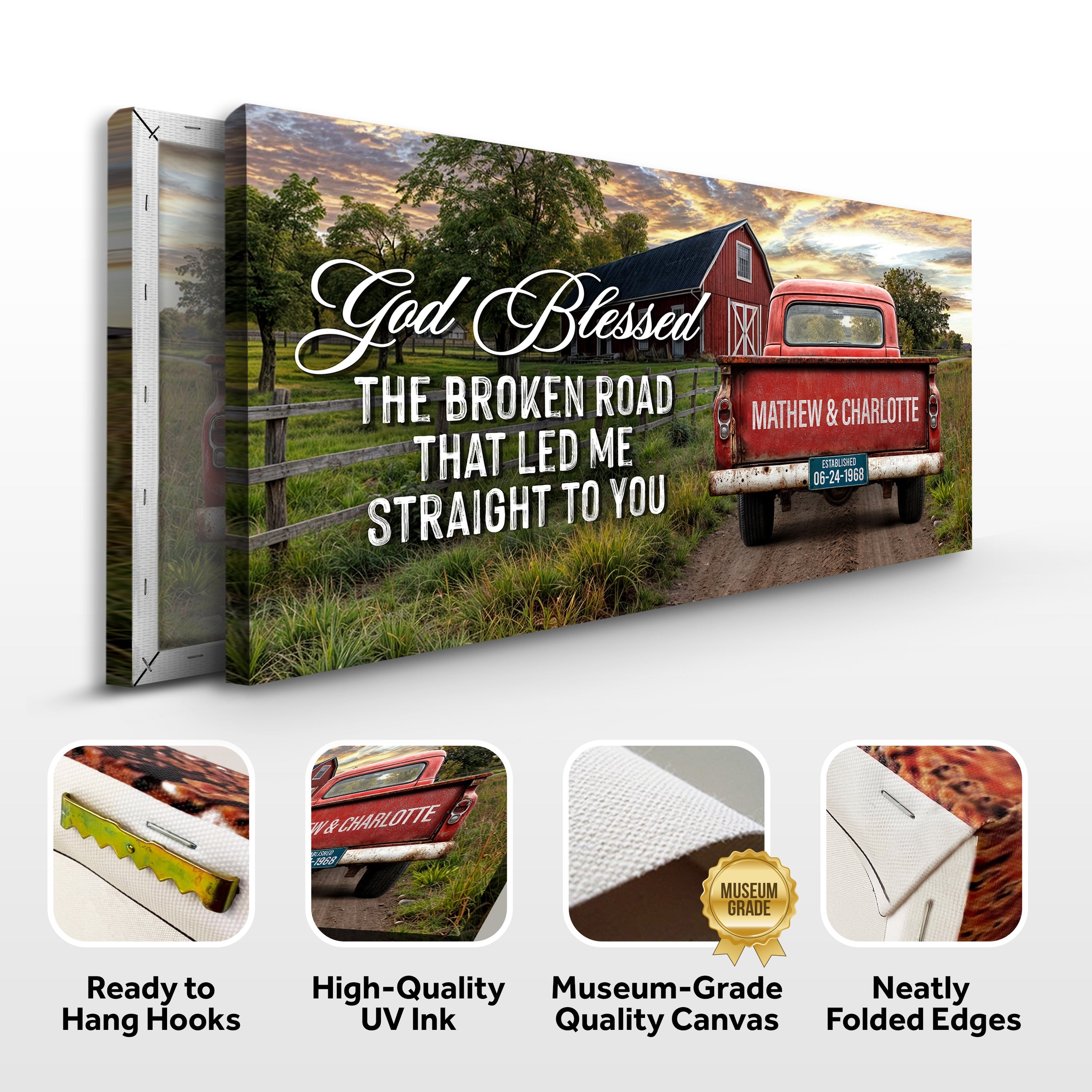 Custom Vintage Truck Couple Sign V ‐ 60x30 inch Extra Large Premium Gallery Wrapped