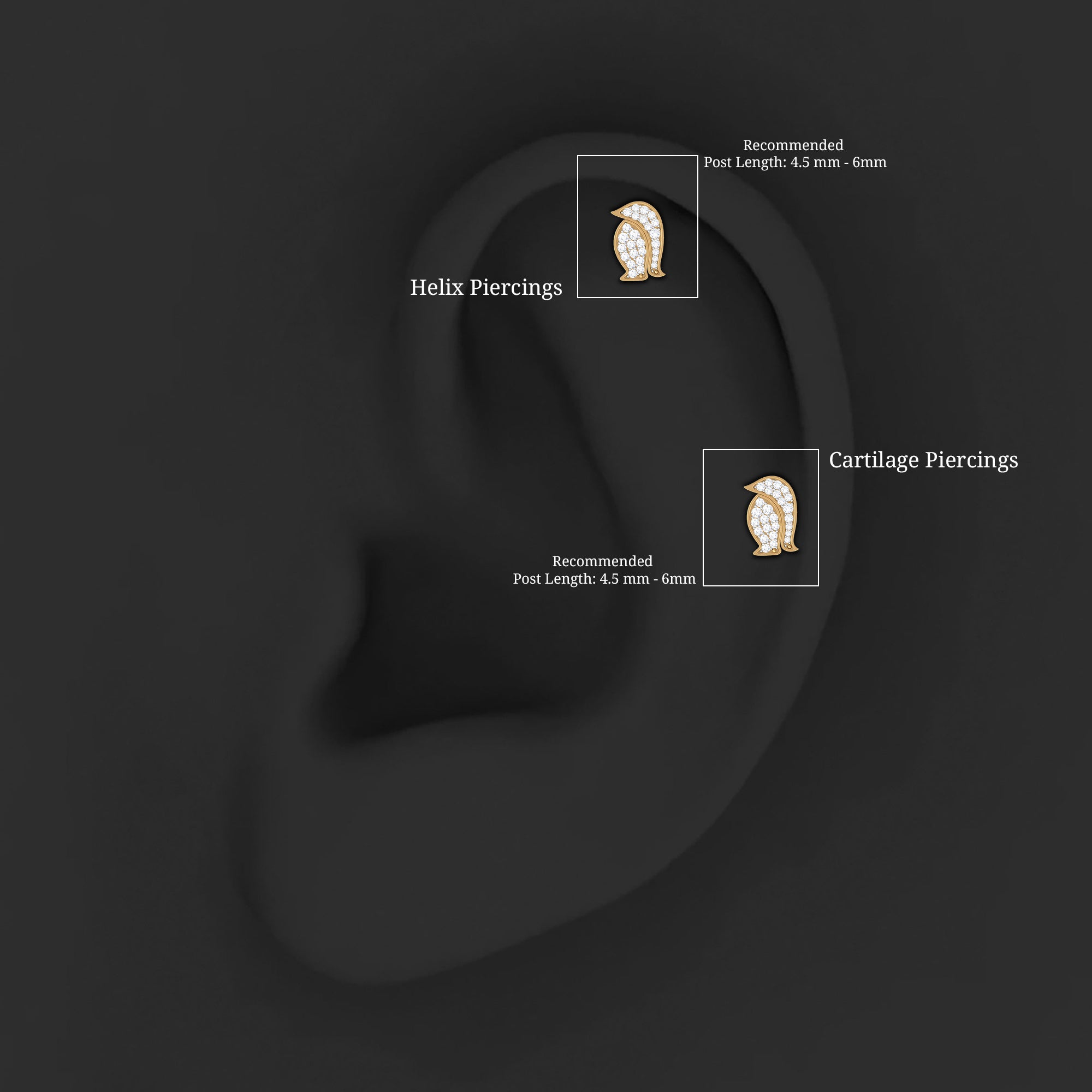 Cute Diamond Penguin Earring for Cartilage Piercing ‐ Lab - ( EF-VS ) / 14K Yellow Gold / Select Option