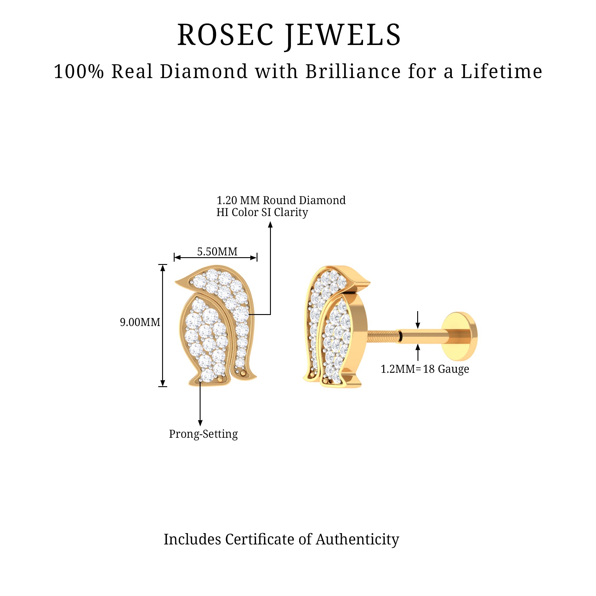 Cute Diamond Penguin Earring for Cartilage Piercing ‐ Natural - ( HI-SI ) / 14K Yellow Gold / Flat Back 5.5 MM