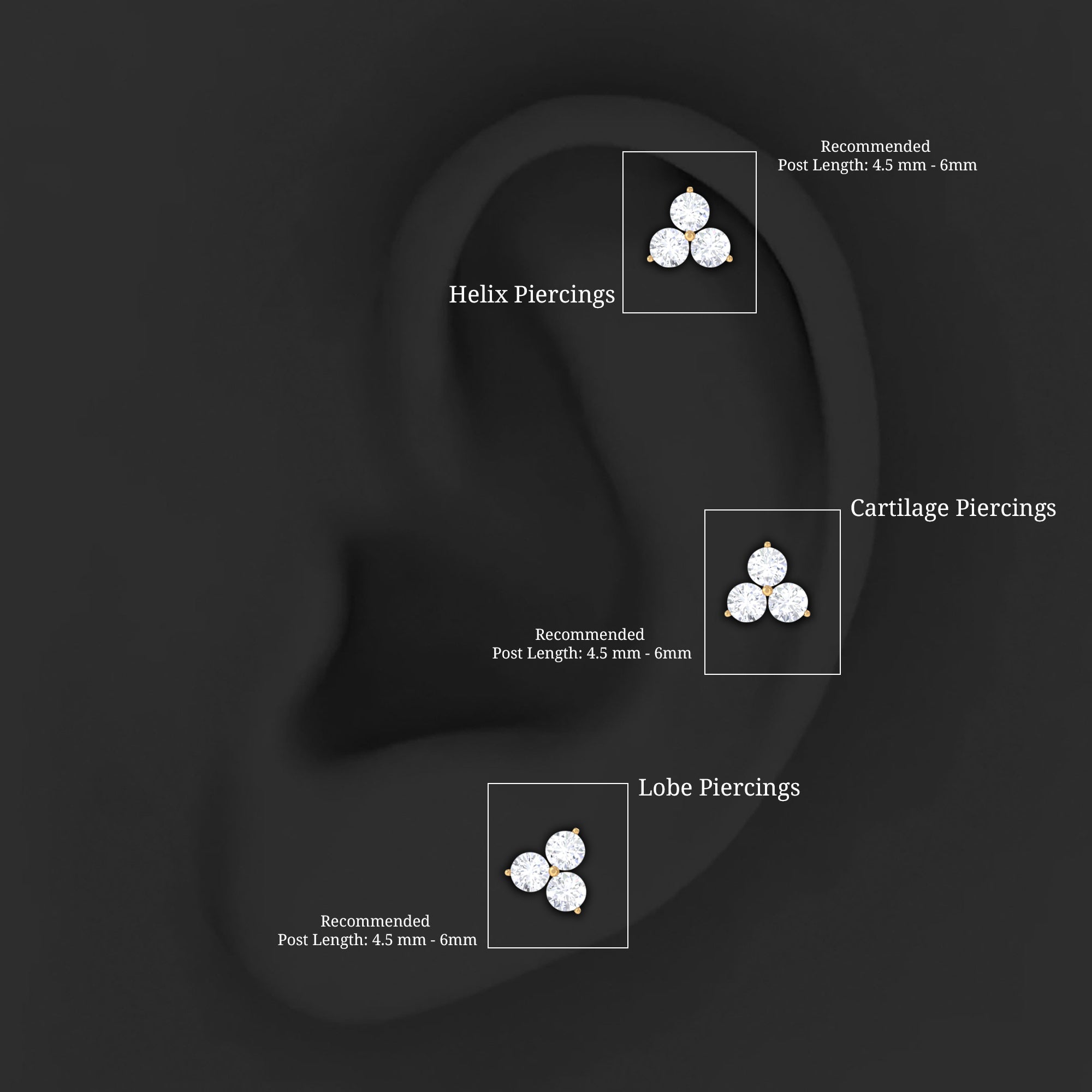 - This earpiece is designed for Tragus, Conch, Helix, Cartilage, and Upper lobe Piercing, it offers a secure and comfortable fit. You will enjoy all-day elegance without sacrificing comfort.