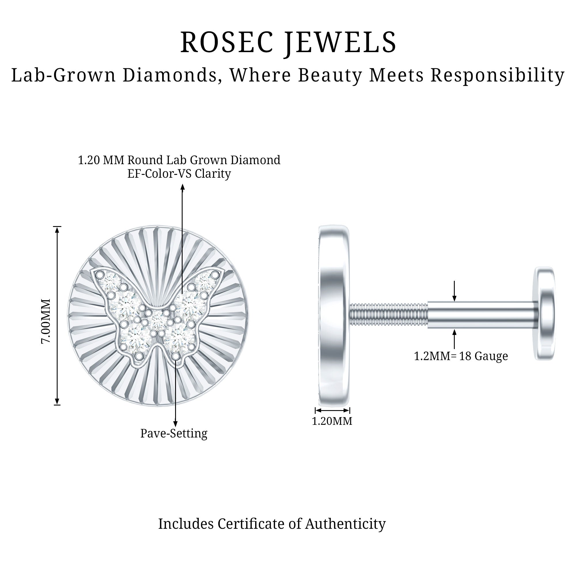 Diamond Butterfly Earring for Cartilage Piercing ‐ Lab - ( EF-VS ) / 14K White Gold / Flat Back 5.0 MM
