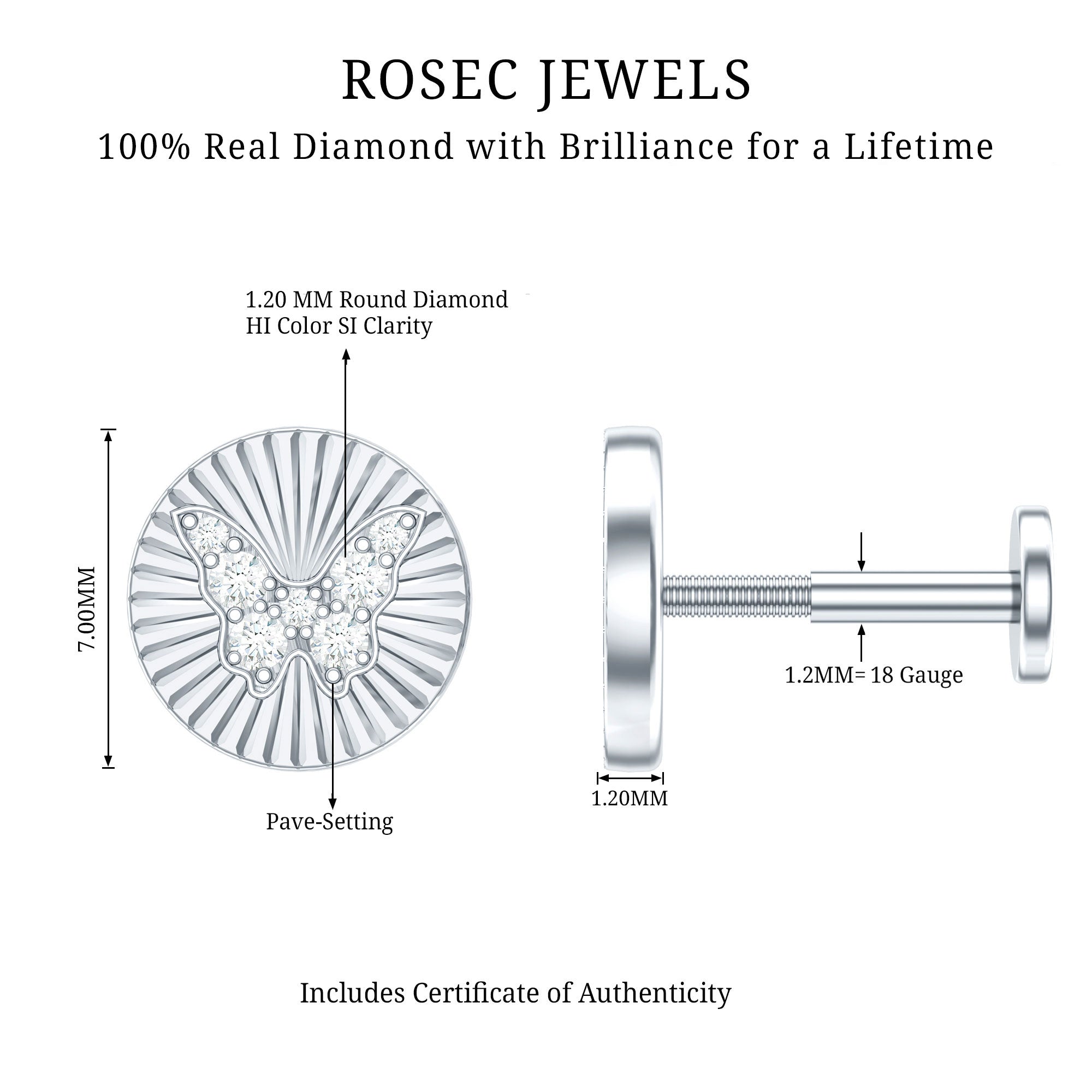 Diamond Butterfly Earring for Cartilage Piercing ‐ Natural - ( HI-SI ) / 14K White Gold / Flat Back 4.5 MM