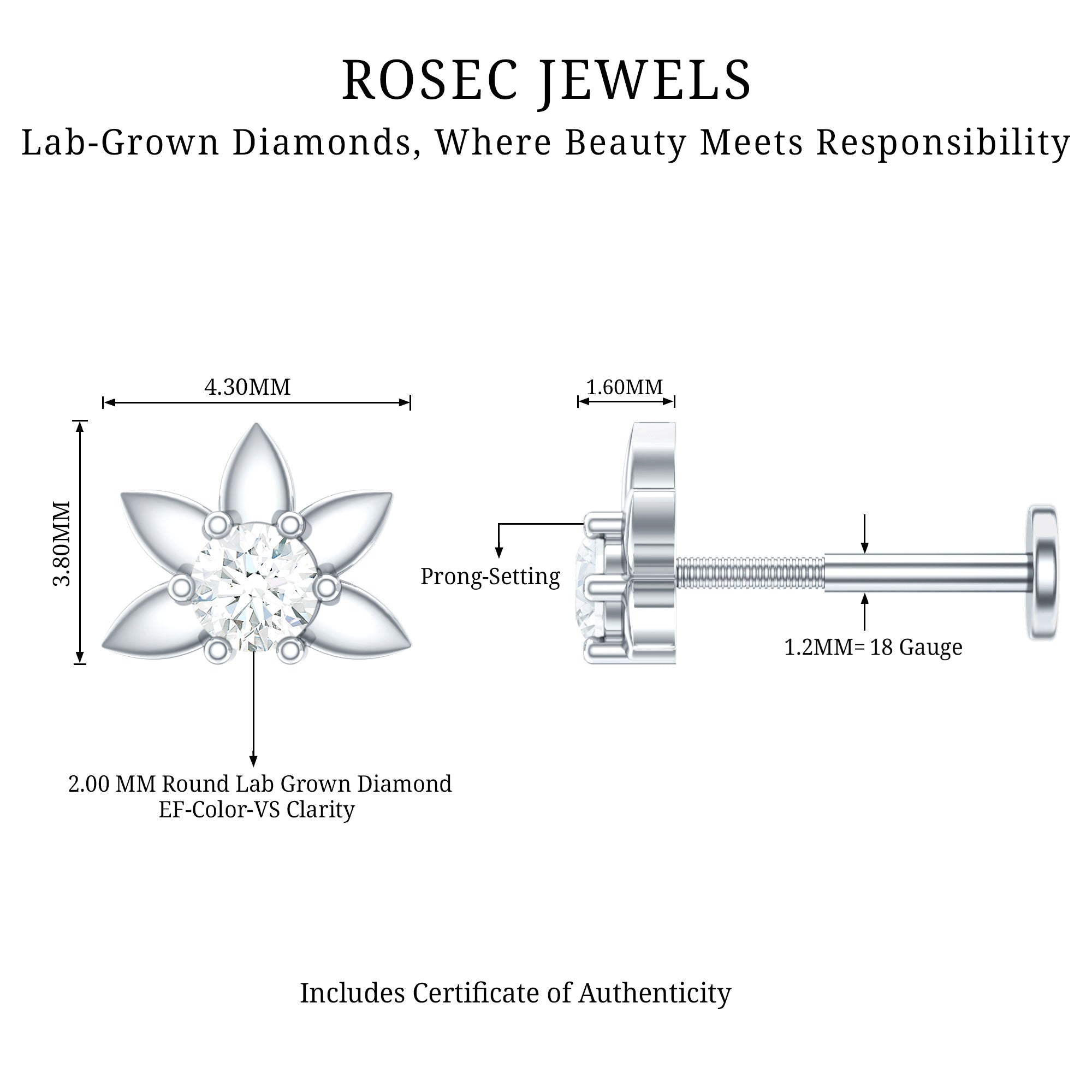 Diamond Floral Earring for Tragus Piercing ‐ Lab - ( EF-VS ) / 18K White Gold / Flat Back 5.0 MM