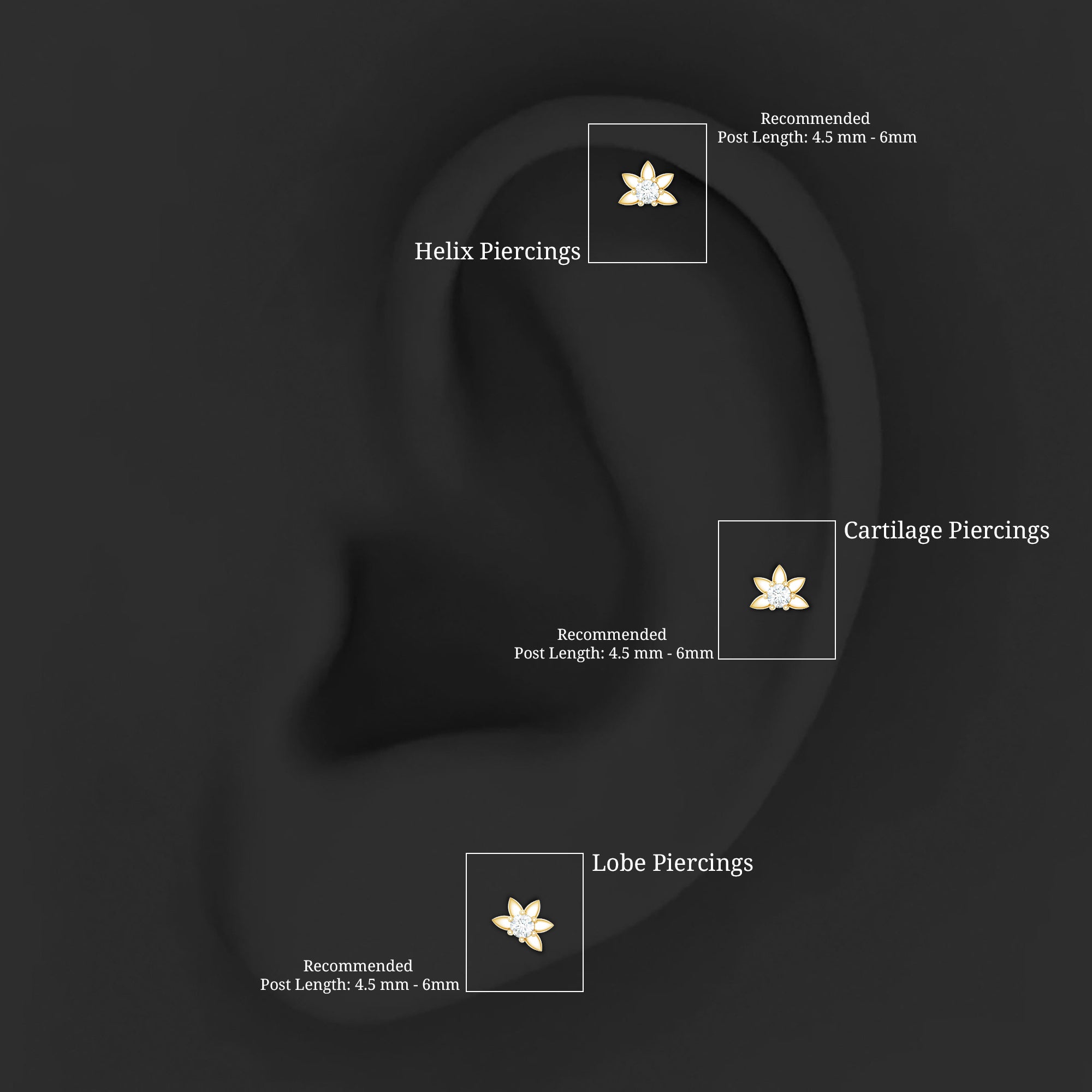 Diamond Floral Earring for Tragus Piercing ‐ Natural - ( HI-SI ) / 10K Yellow Gold / Flat Back 5.0 MM