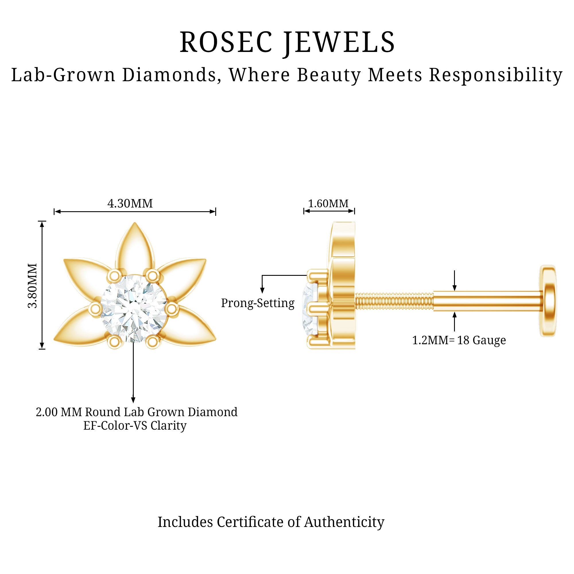 Diamond Floral Earring for Tragus Piercing ‐ Lab - ( EF-VS ) / 10K Yellow Gold / Flat Back 5.5 MM