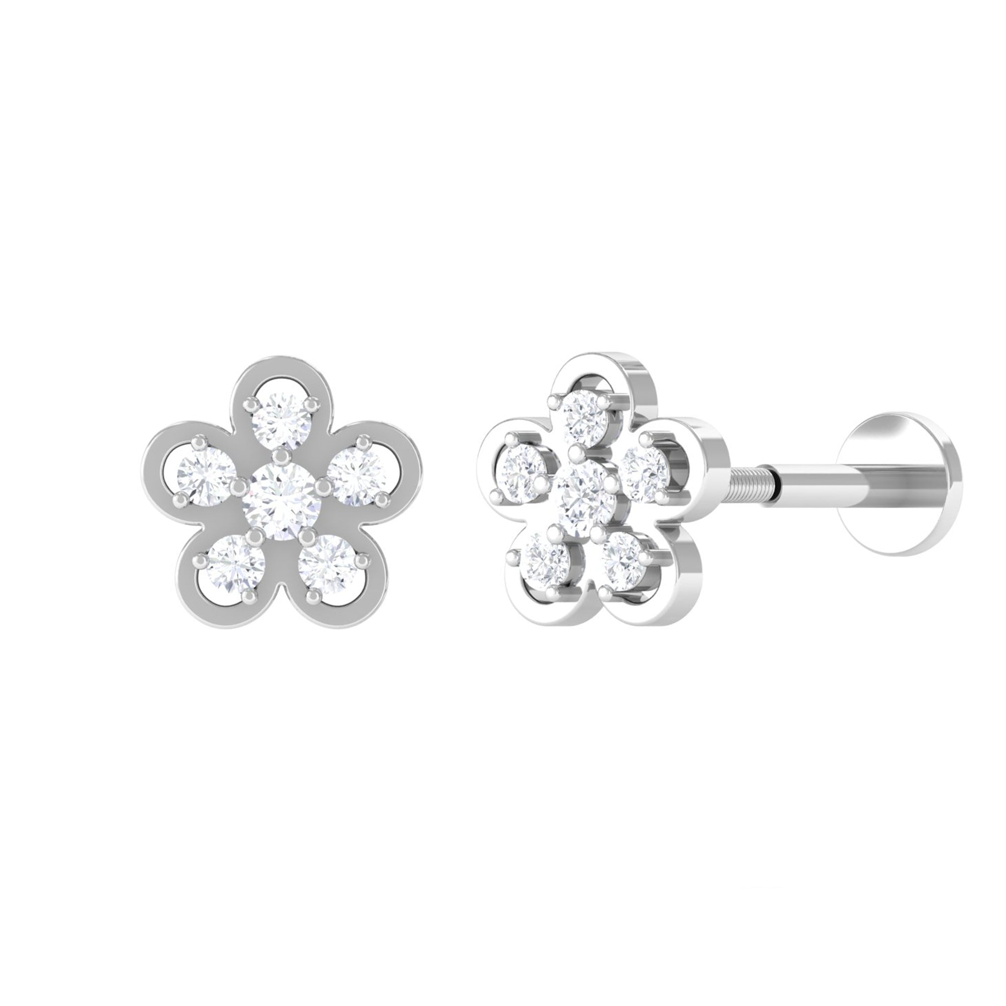 Diamond Floral Helix Earring for Women ‐ Lab - ( EF-VS ) / 14K White Gold / Flat Back 4.5 MM