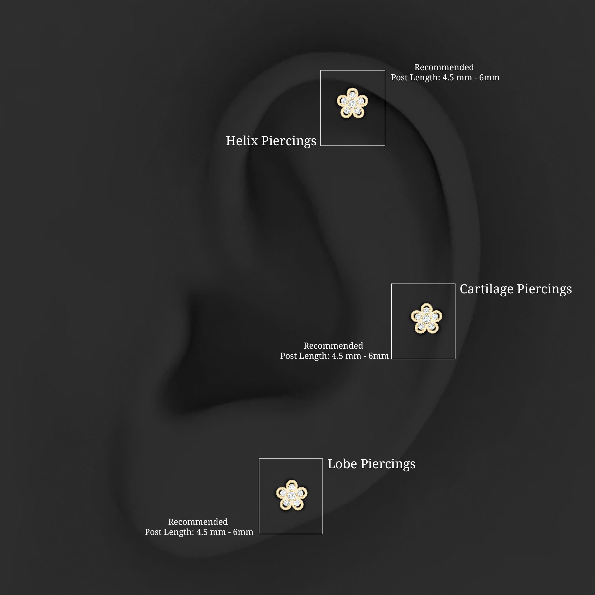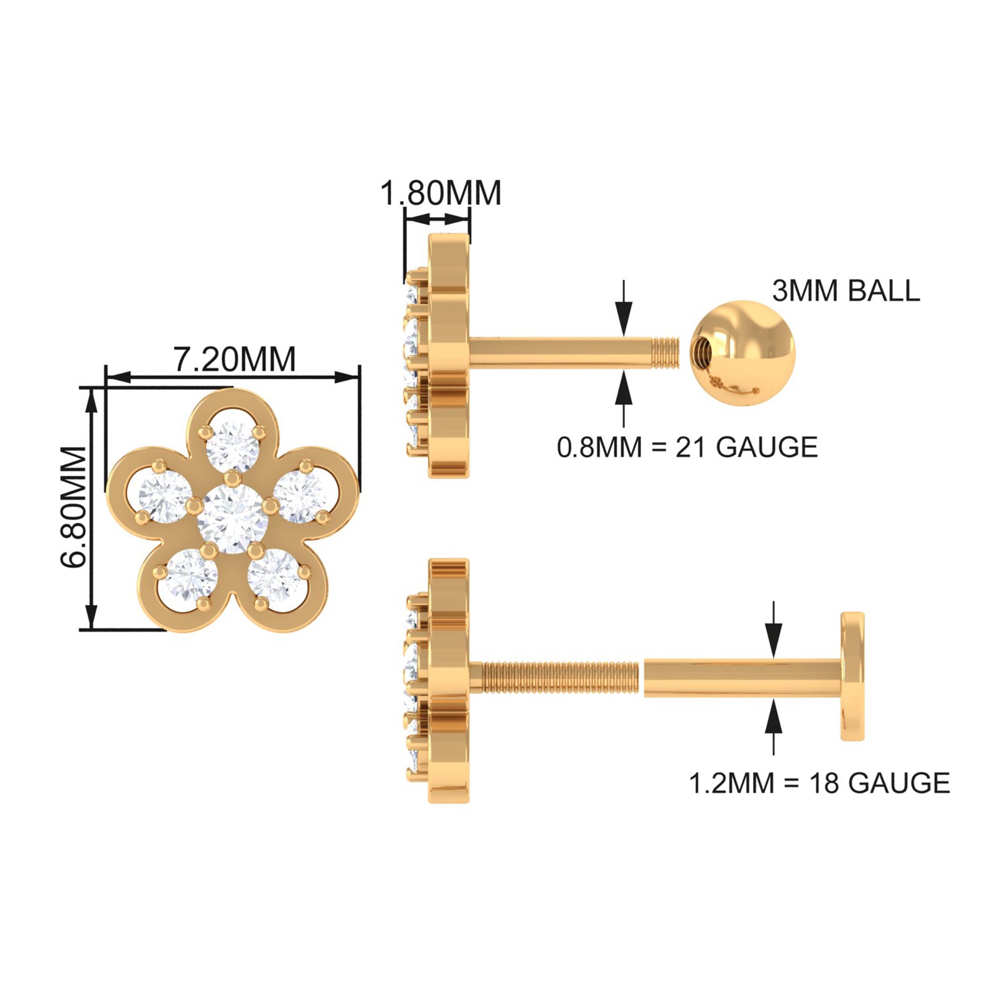Perfectly adorable! Our Diamond Floral Earring features glistening Round Shape Diamonds delicately arranged in Prong Setting, on a captivating flower design. This Helix Piercing Earring stands out as a remarkable piece of jewelry, capable of transforming any mundane outfit into a vibrant and more appealing ensemble with its distinctive vibe. Suitable for Helix, Cartilage, Upper Lobe, and Conch Piercings, this Diamond Floral Earring offers versatile styling options. Elevate your anniversary celebration by gifting your beloved a Diamond Earring that is sure to capture her heart with its timeless beauty.