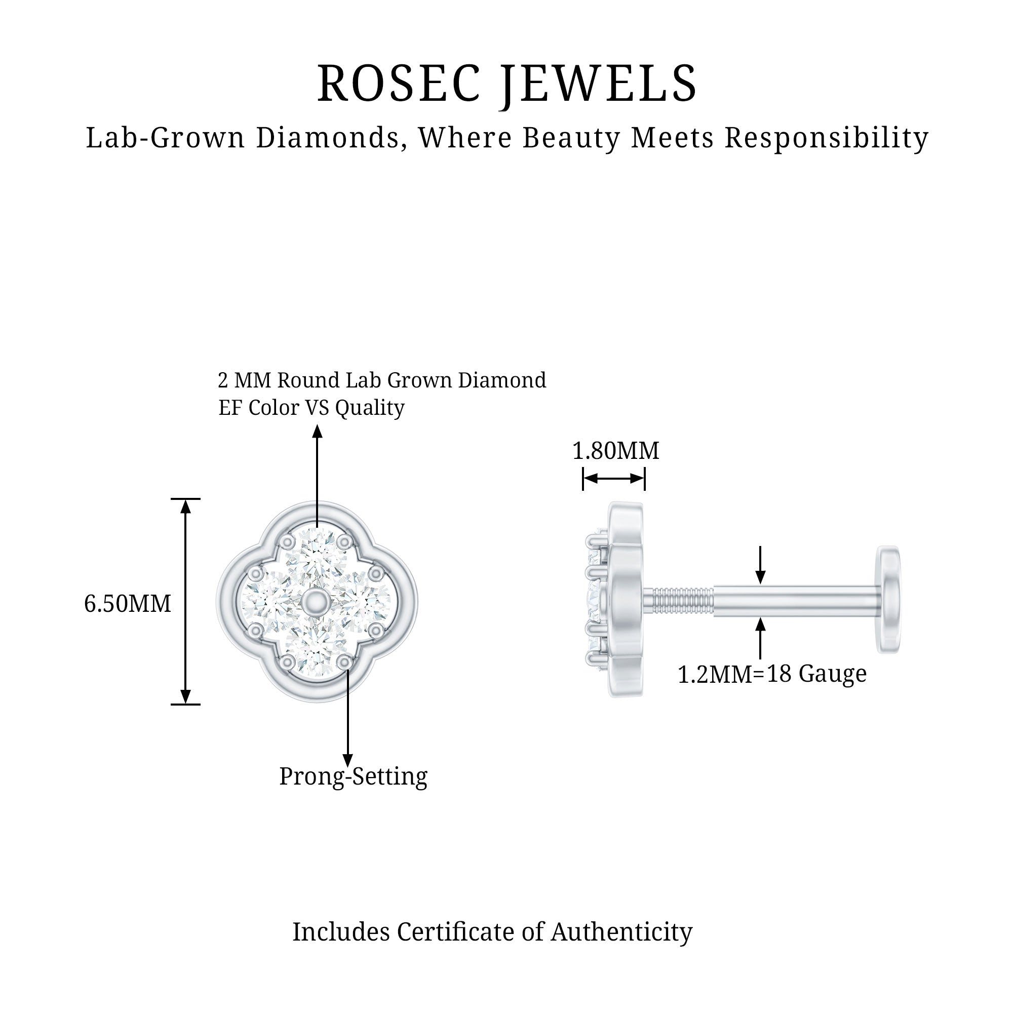 Diamond Flower Cluster Earring for Helix Piercing ‐ Lab - ( EF-VS ) / 10K White Gold / Flat Back 4.5 MM