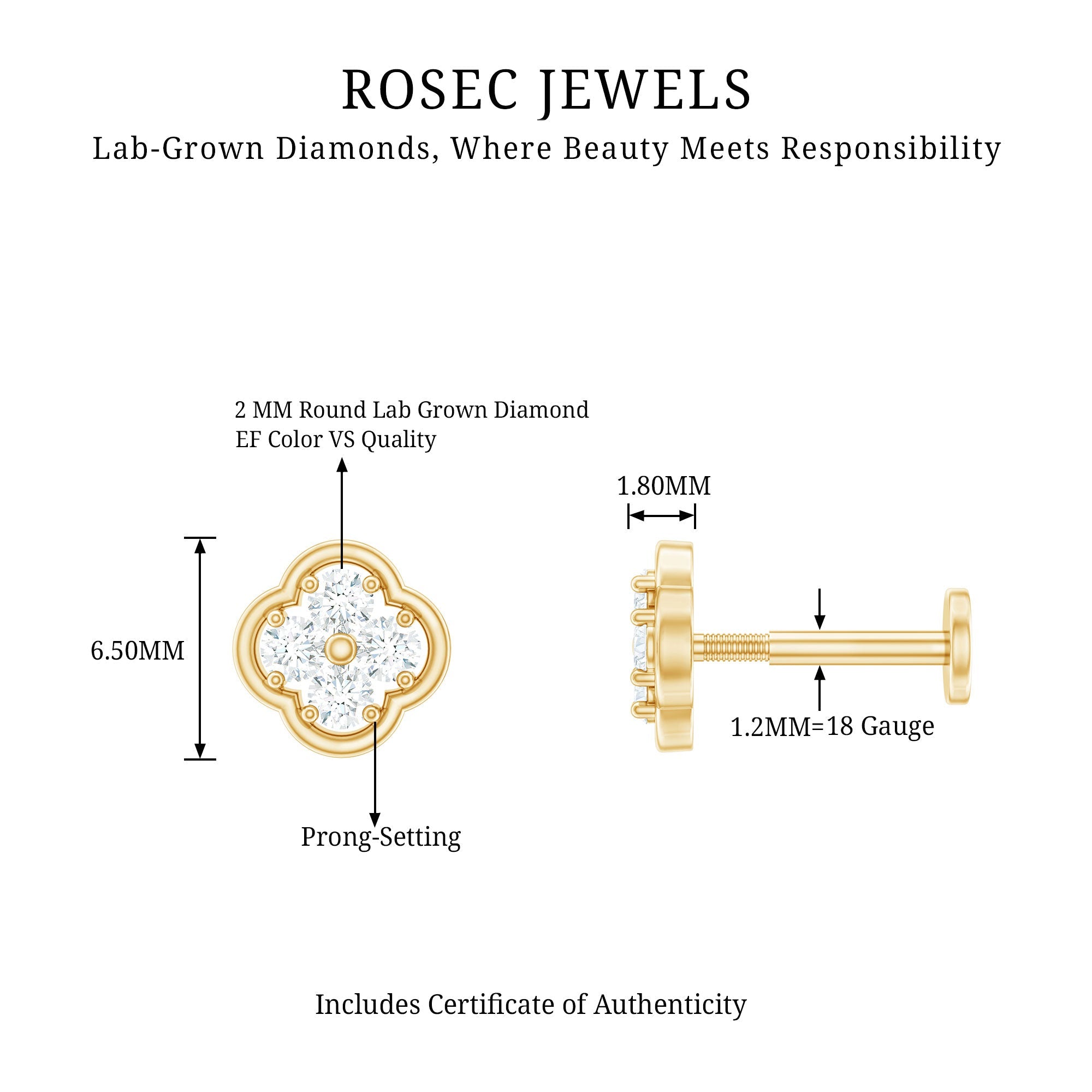 Diamond Flower Cluster Earring for Helix Piercing ‐ Lab - ( EF-VS ) / 14K Yellow Gold / Flat Back 5.5 MM