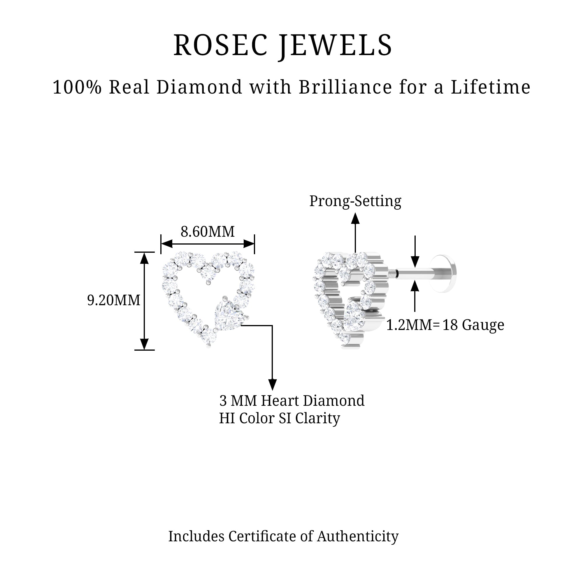 Diamond Heart Shape Cartilage Earring ‐ Natural - ( HI-SI ) / 18K White Gold / Flat Back 4.5 MM
