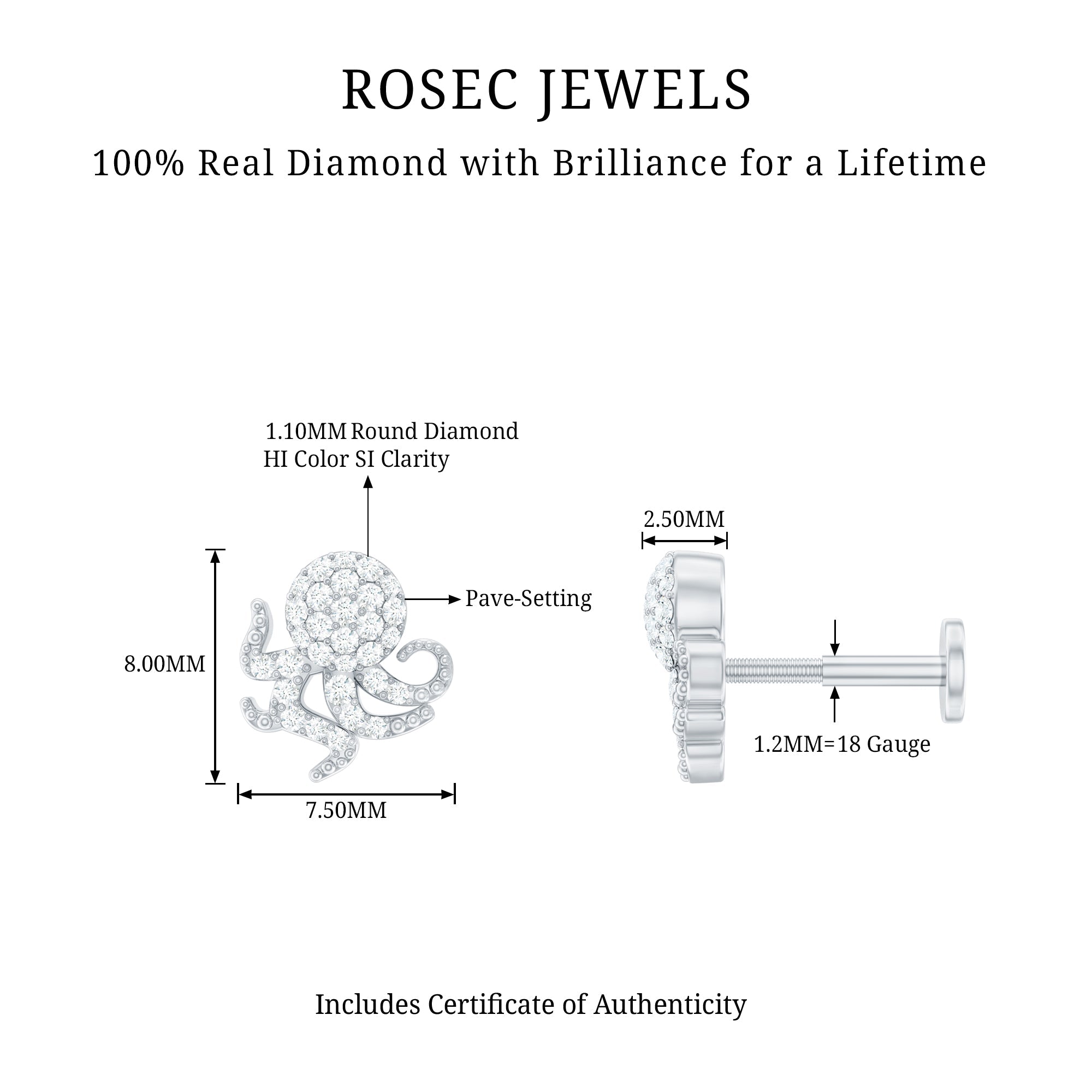 Diamond Octopus Earring with Flat Back ‐ Natural - ( HI-SI ) / 14K White Gold / Flat Back 5.5 MM