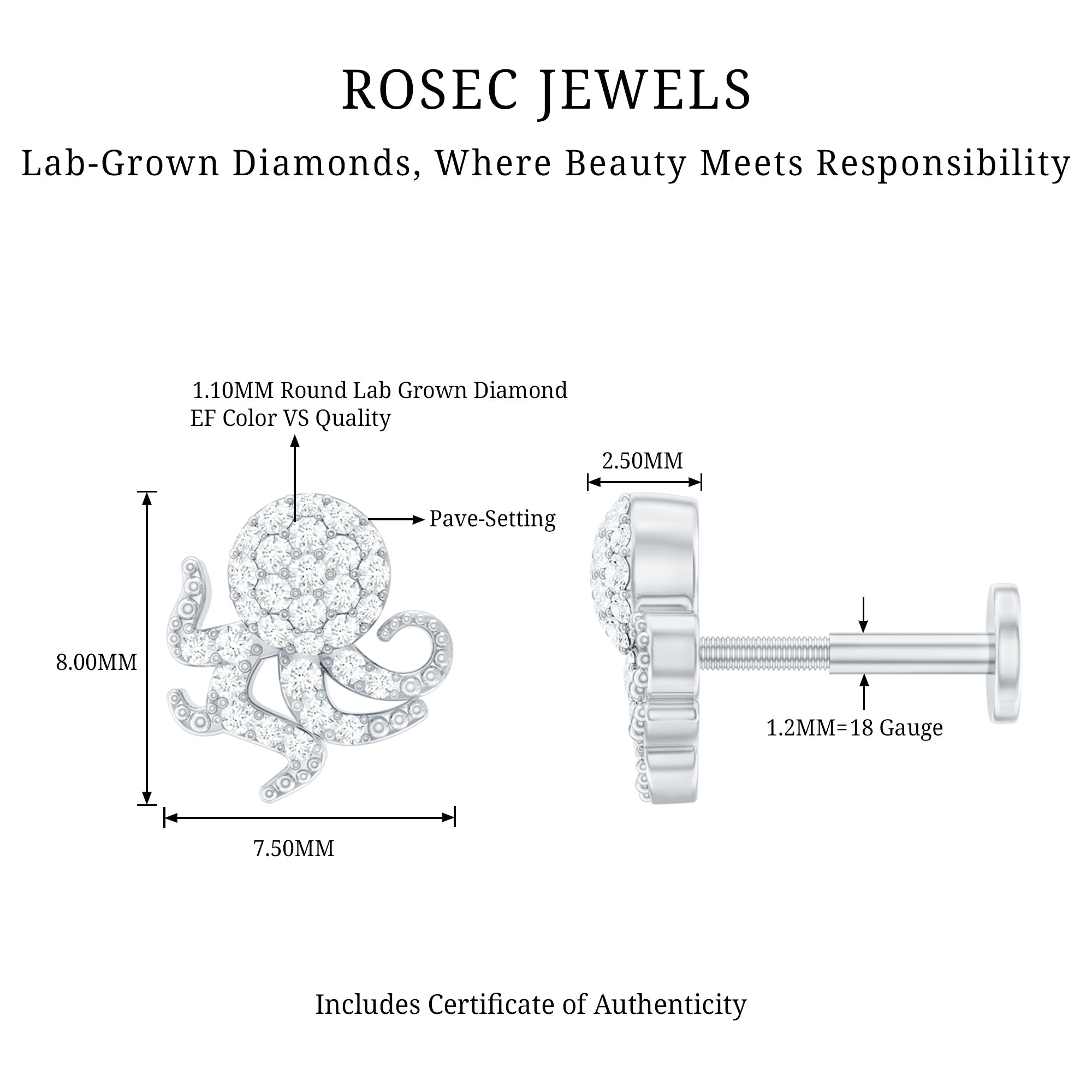Diamond Octopus Earring with Flat Back ‐ Lab - ( EF-VS ) / 18K White Gold / Flat Back 5.5 MM