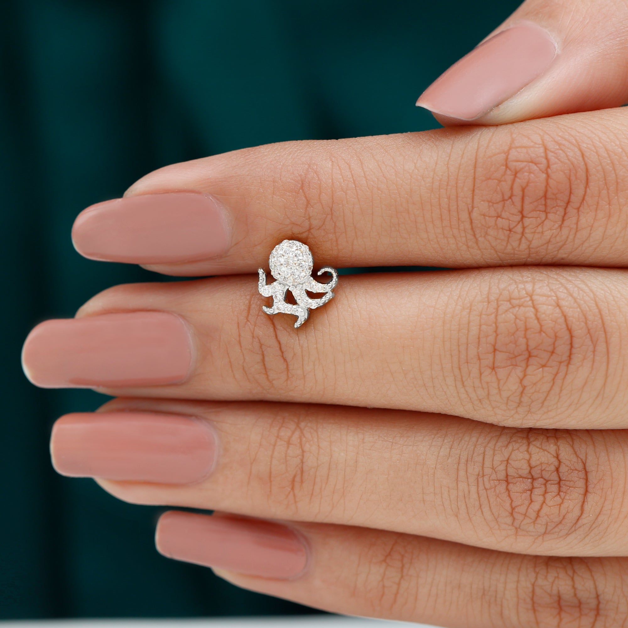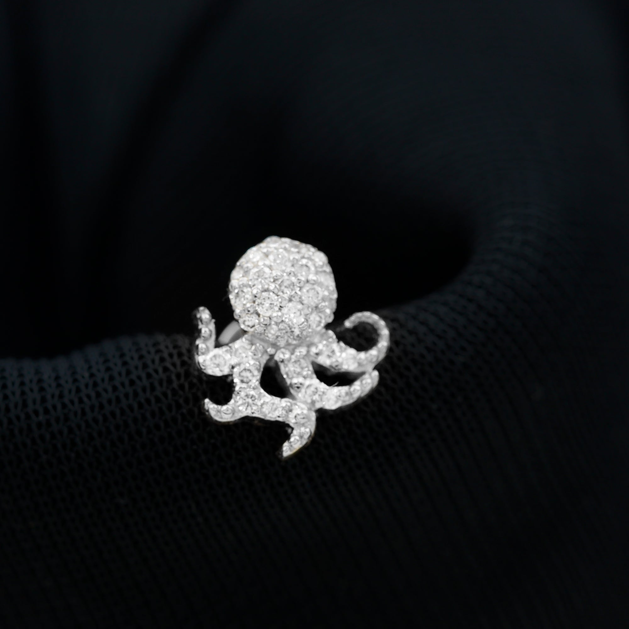 - This Stud Earring features round cut diamonds set in pave setting over a octopus shape, exuding an unmatched sparkle and complemented by hallmark metal.