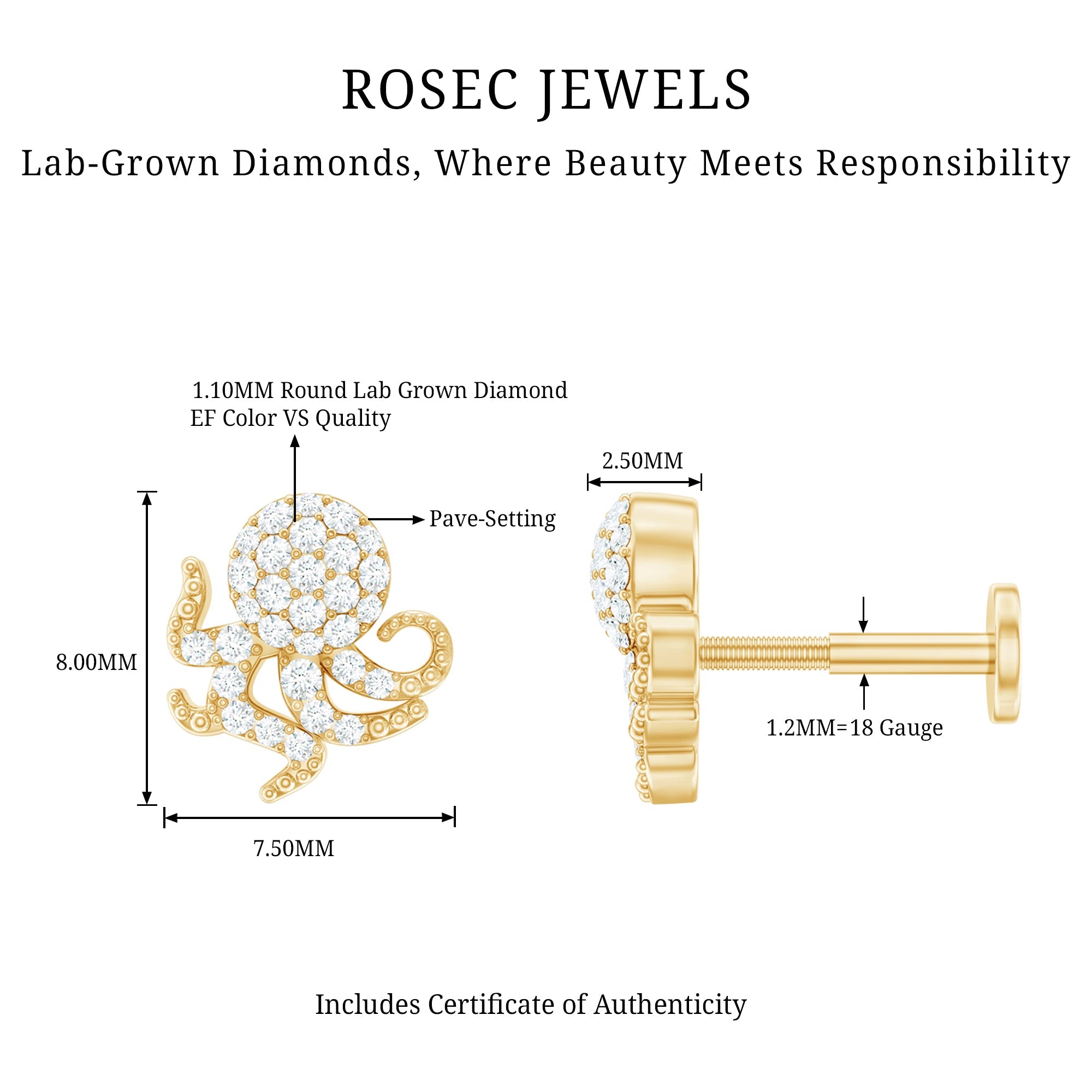 Diamond Octopus Earring with Flat Back ‐ Lab - ( EF-VS ) / 14K Yellow Gold / Flat Back 5.5 MM