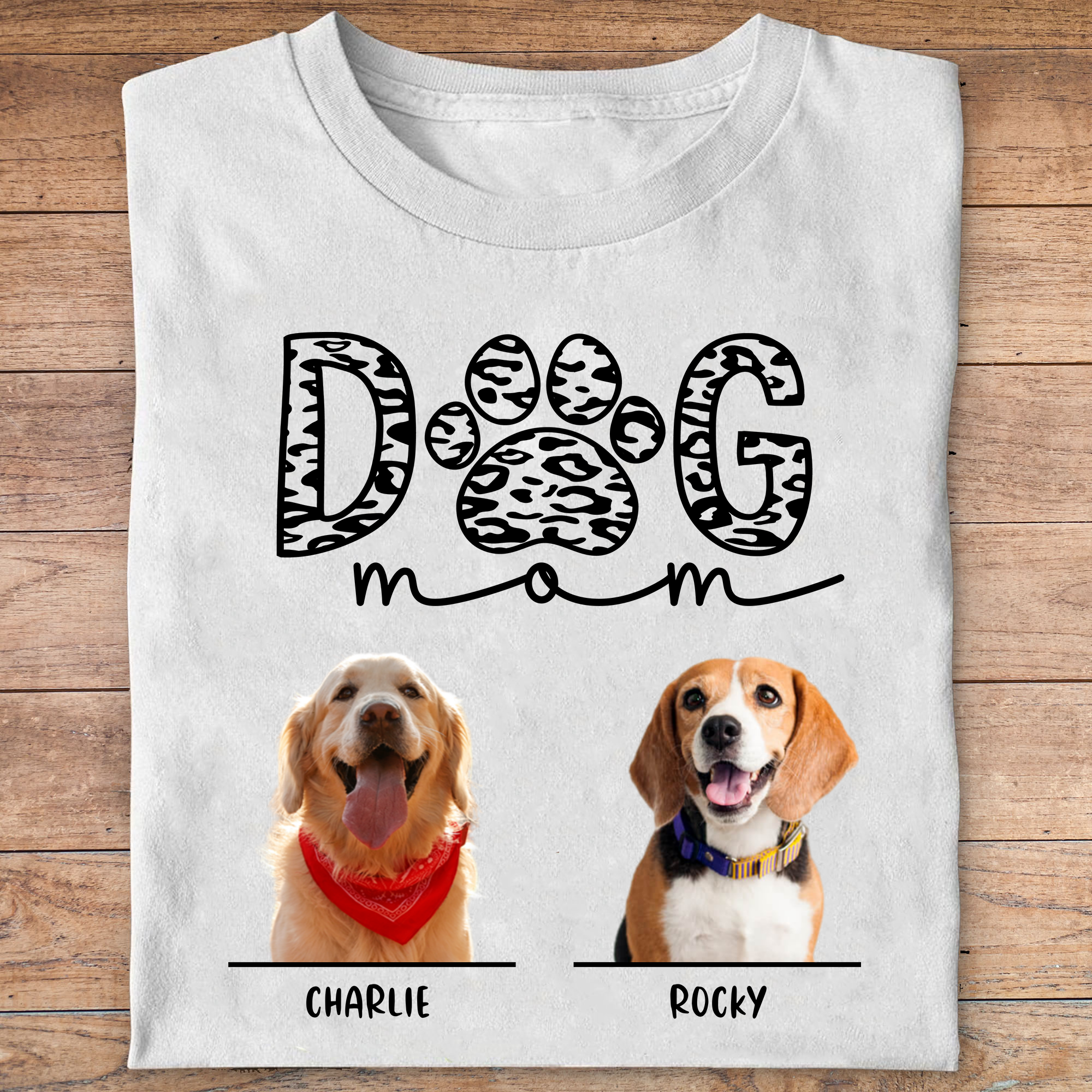 Dog Mom Personalized Custom Photo Dog Shirt T652 ‐ Basic Tee / White / XL