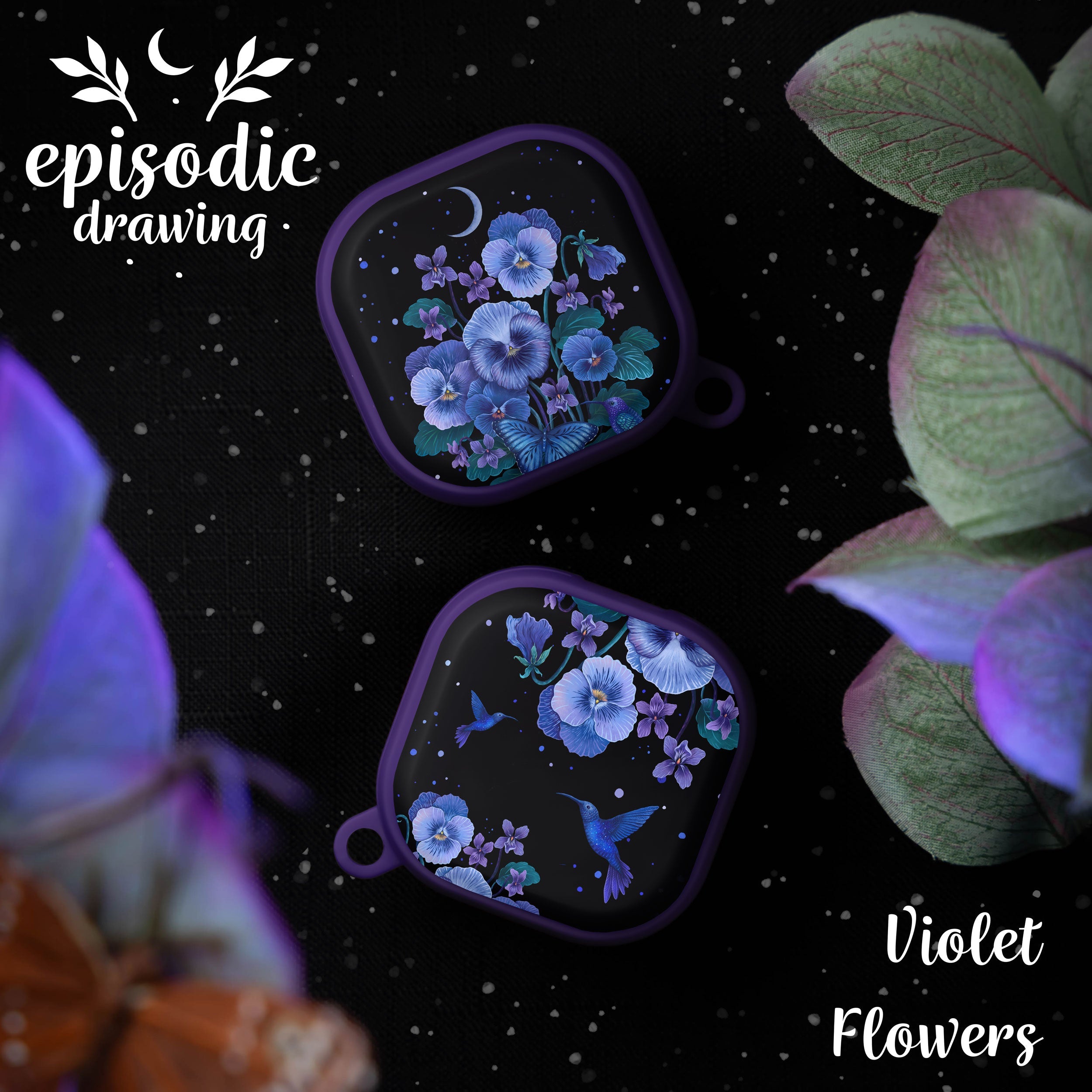 Episodic Drawing Enchanted Collection HDX Samsung Galaxy Buds Pro & Buds Live Case Cover ‐ Violet Flowers