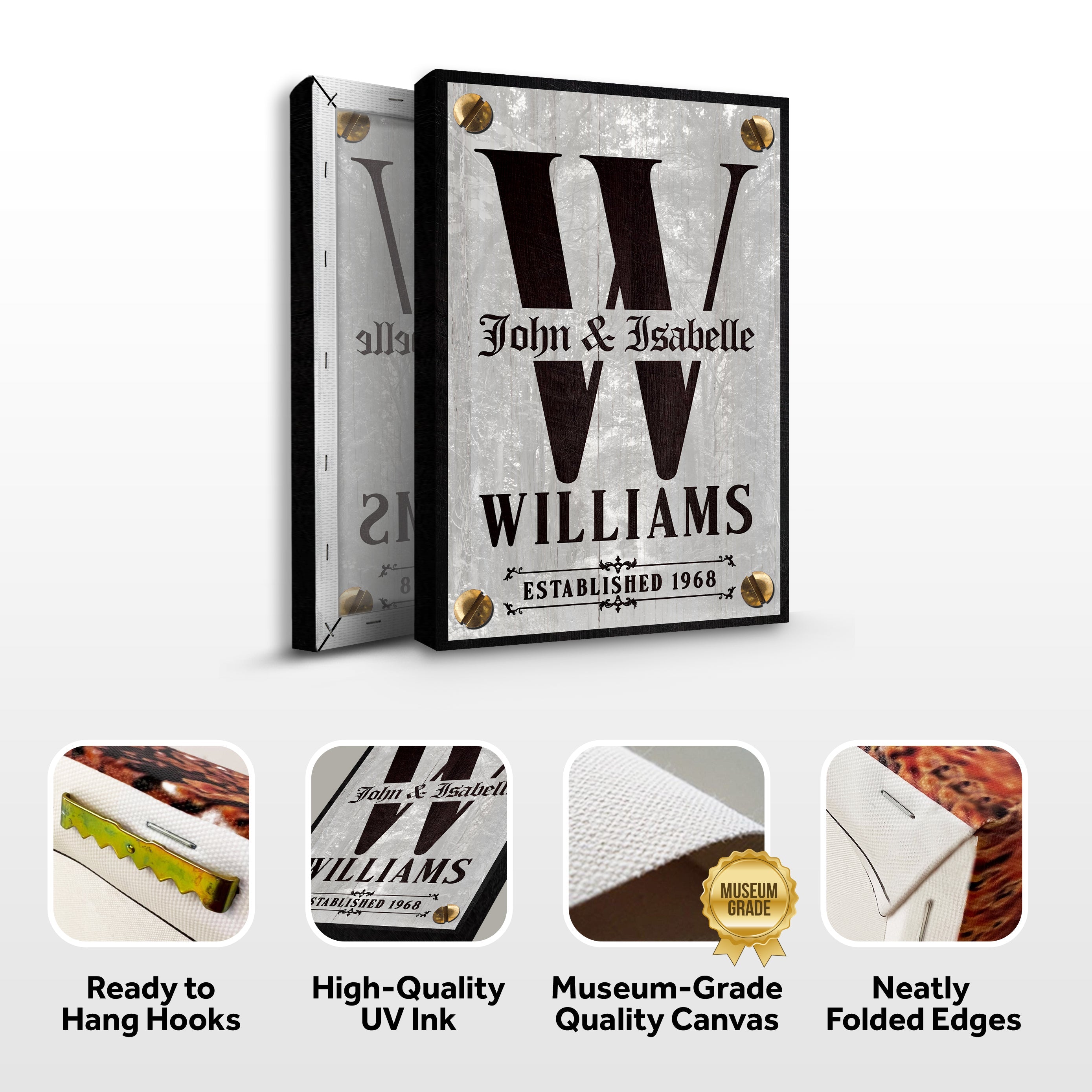 Transform your living space into a haven of cherished memories and warm family ties with our exquisite Family Name Portrait Monogram Sign. Crafted with utmost care and attention to detail, this stunning canvas sign doesn't just decorate your walls – it weaves your family's story into the very fabric of your home.