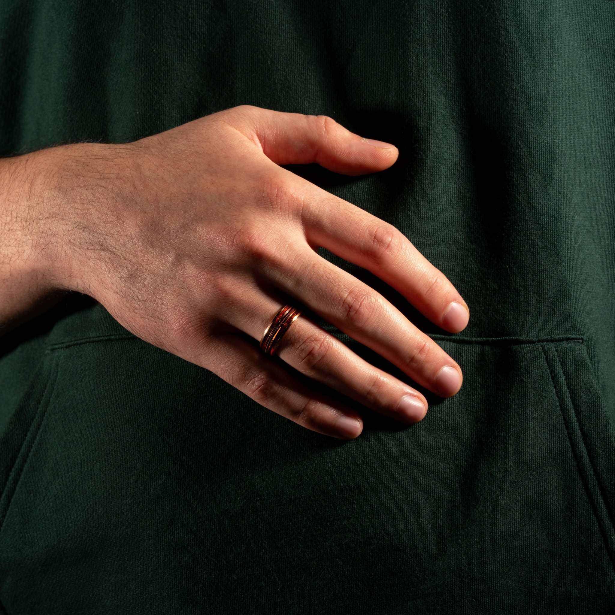 This exquisite wedding band is a blend of rose gold and tungsten, making it a standout choice. It symbolizes more than just commitment and love; it's a tribute to the shared passion for music and fine craftsmanship.