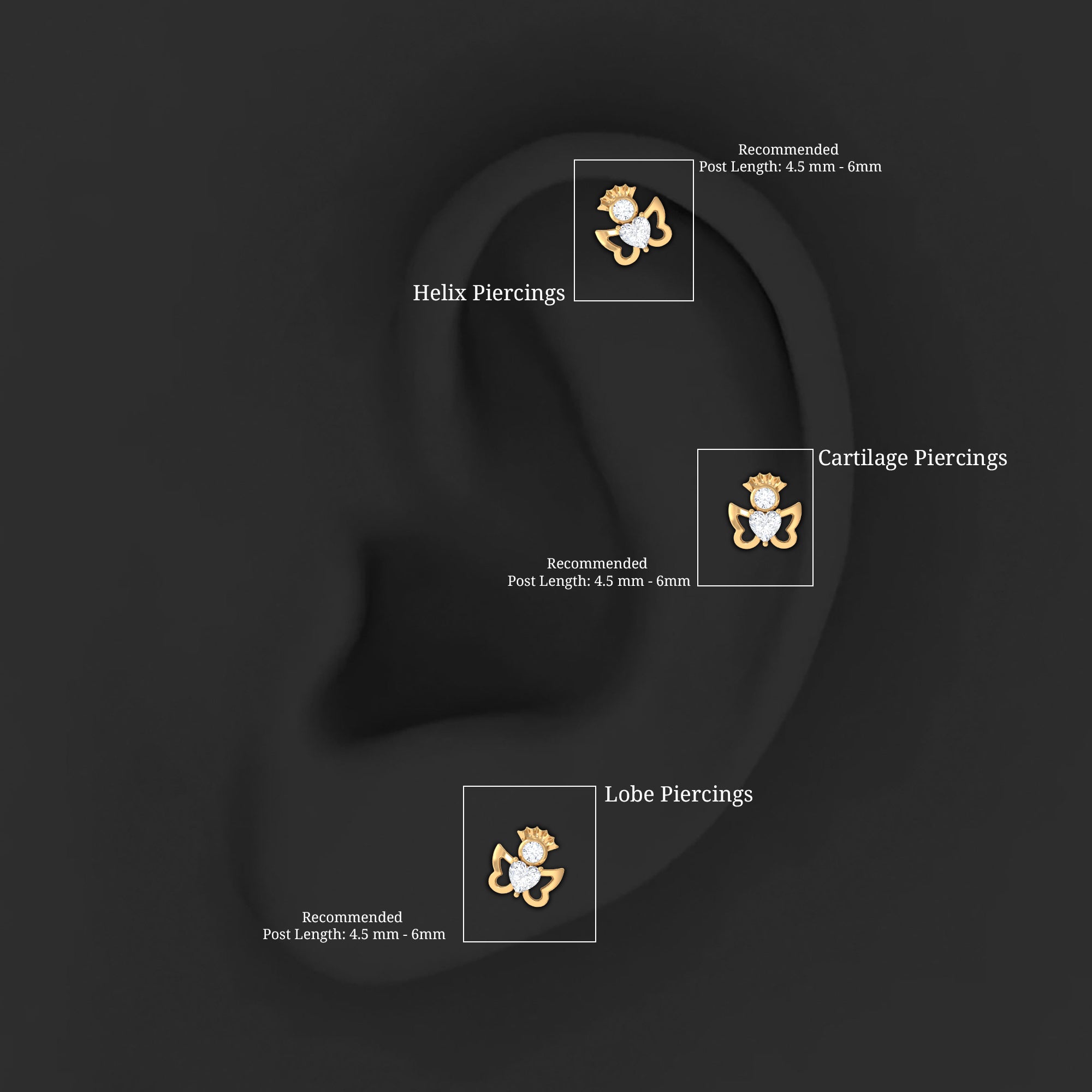 Heart Diamond Angel Earring for Helix Piercing ‐ Natural - ( HI-SI ) / 18K Yellow Gold / Flat Back 4.5 MM